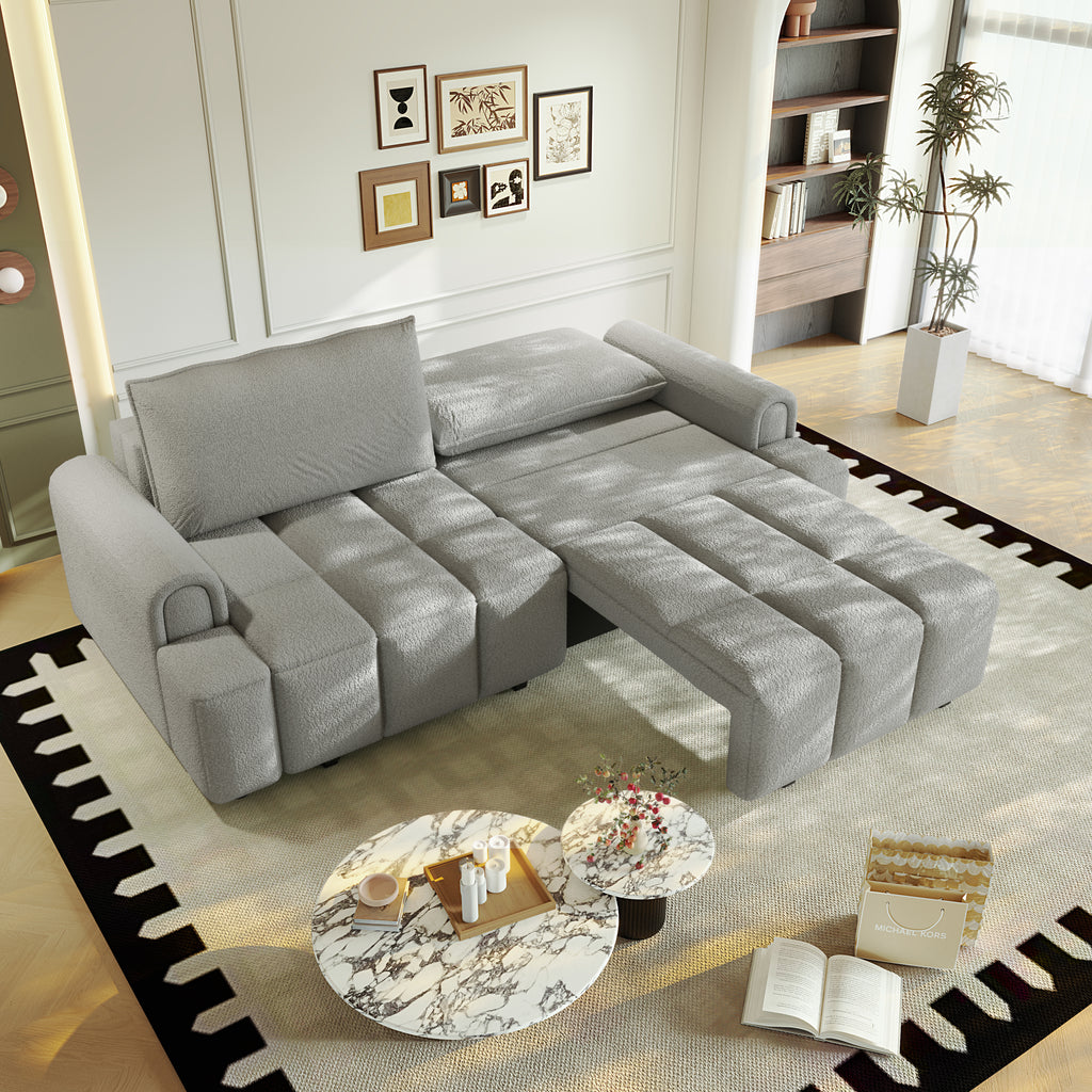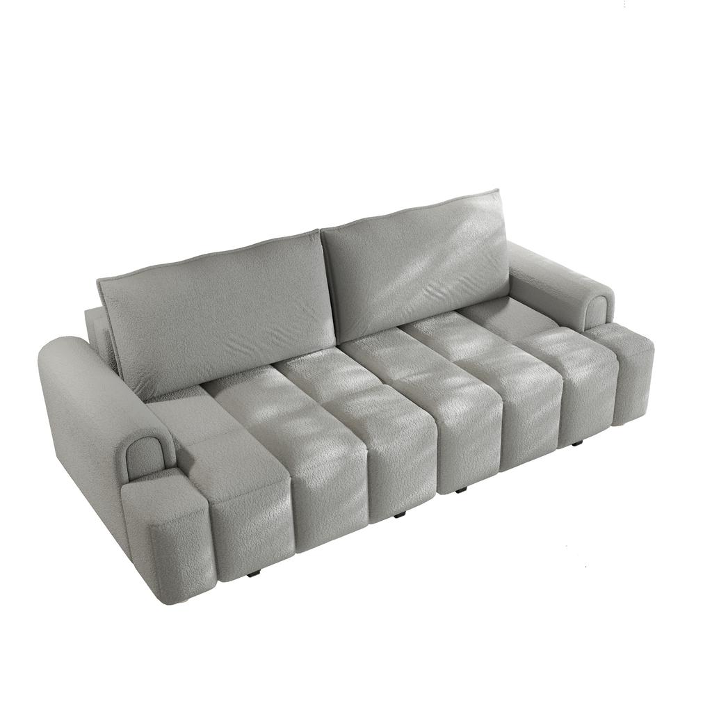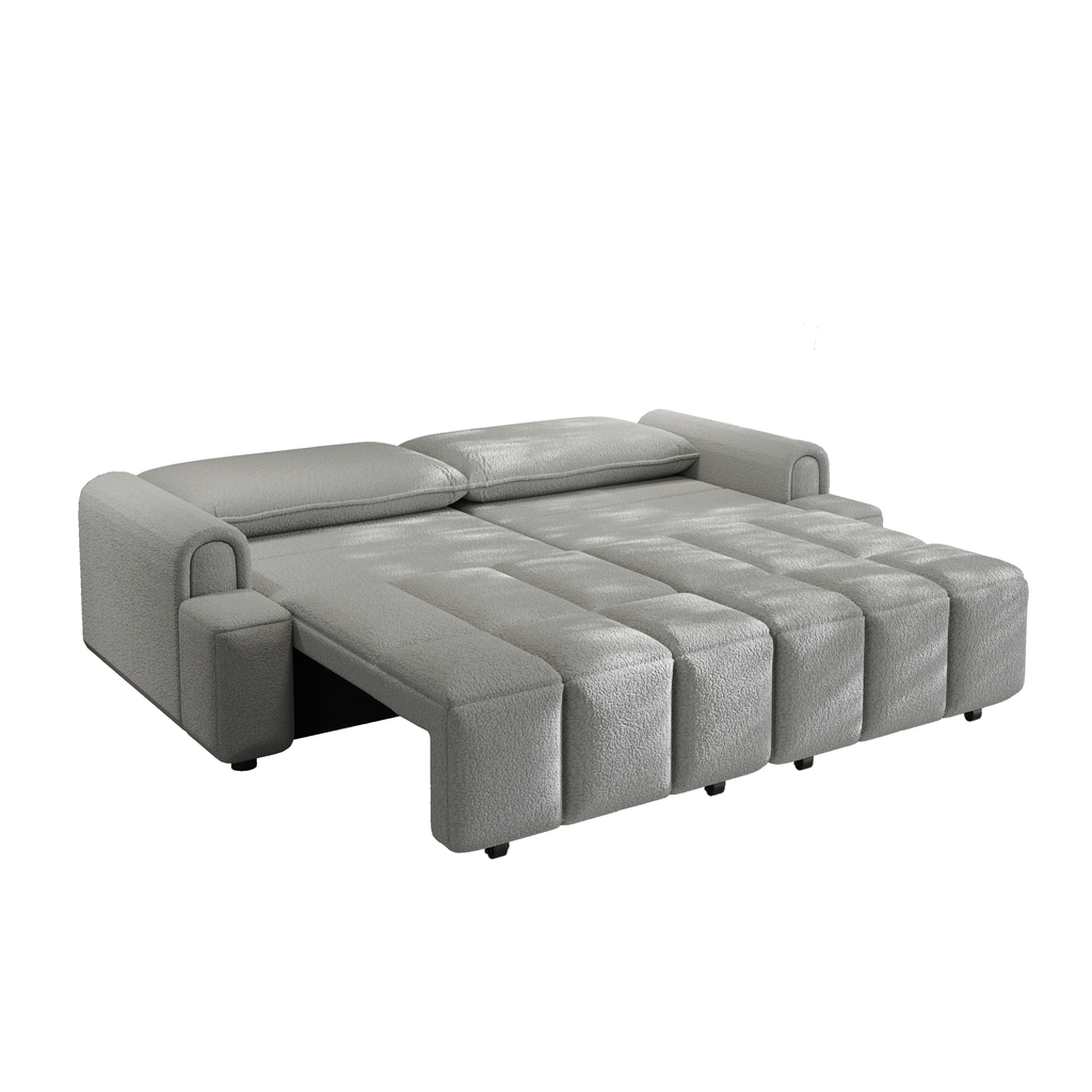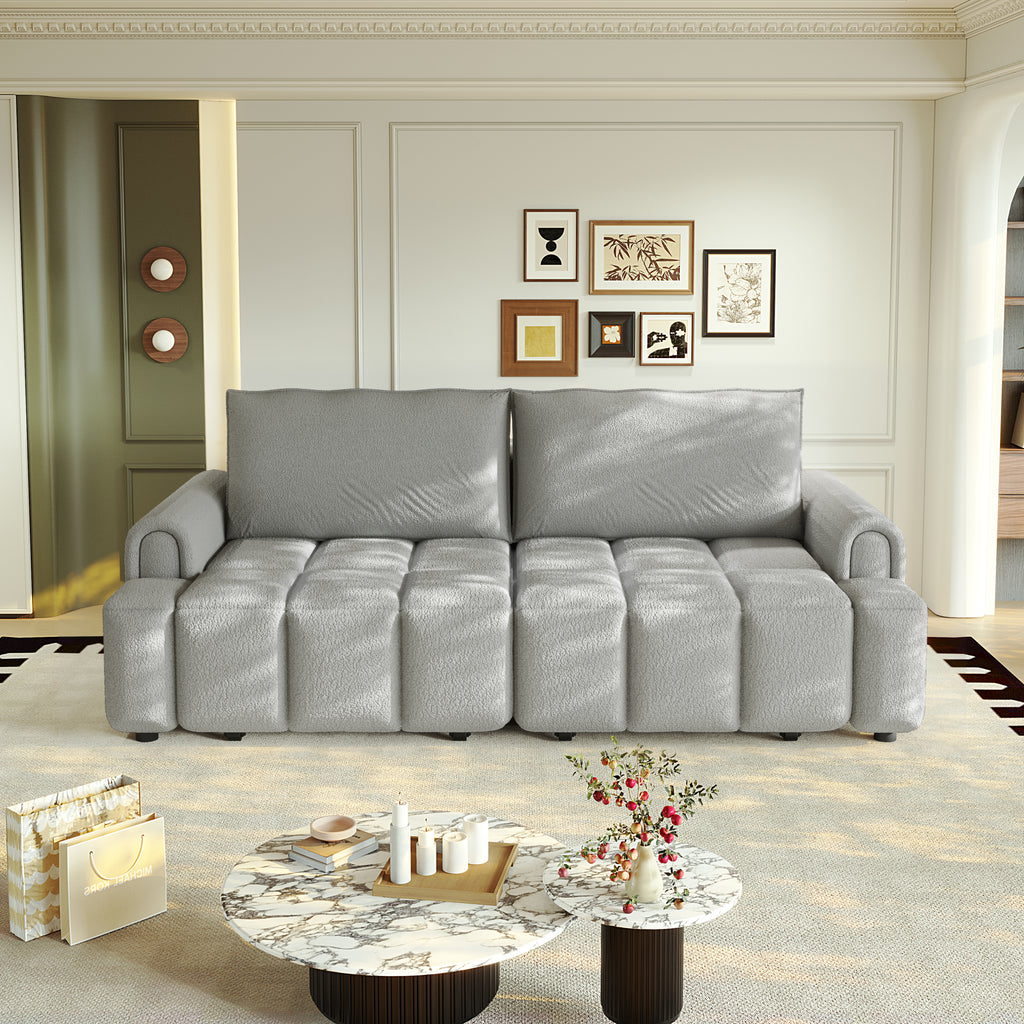 90.2' Comfy 4-Seater Modern Teddy Fabric Couch with Seats Storage, King Size 3-in-1 Convertible Sleeper Sofa Bed for Living Room,Office,Apartment,Light Grey(Old SKU:W1885S00250)