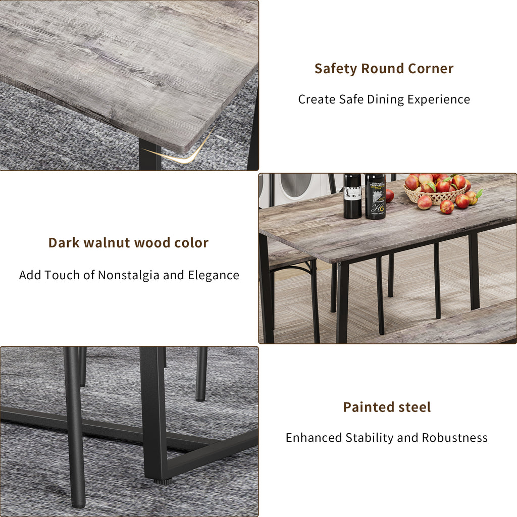 • 6-piece cutlery set: This cutlery set includes a table and four matching chairs, as well as a bench, suitable for family gatherings. The legs of the table and chair are equipped with basic plastic protective foot pads, which can protect the floor from scratches and ensure the stability of the table and chair.