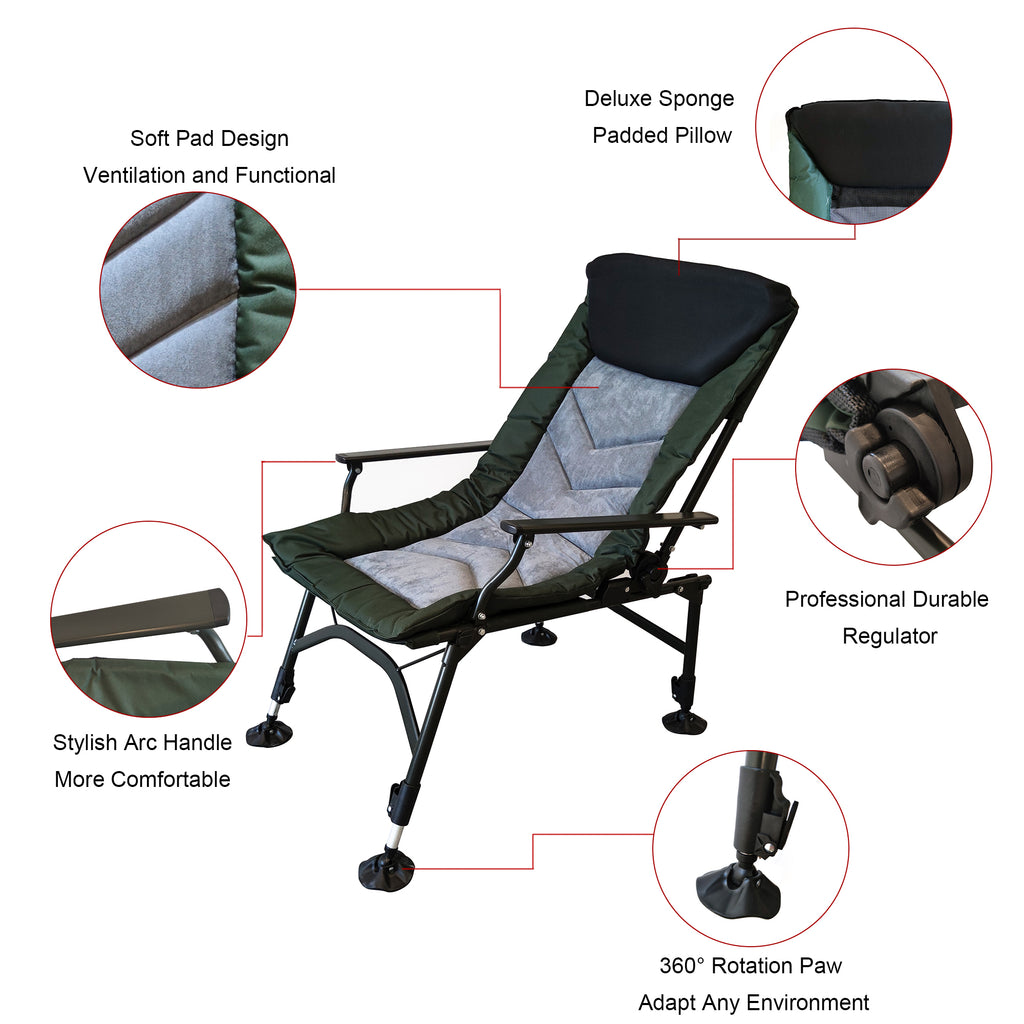 • 4. Adjustable Foot Cup: The legs can adjust the height balance and the foot cup of the chair can be adjusted 360°, enabling it to adapt to different outdoor environments.