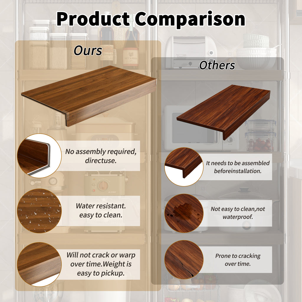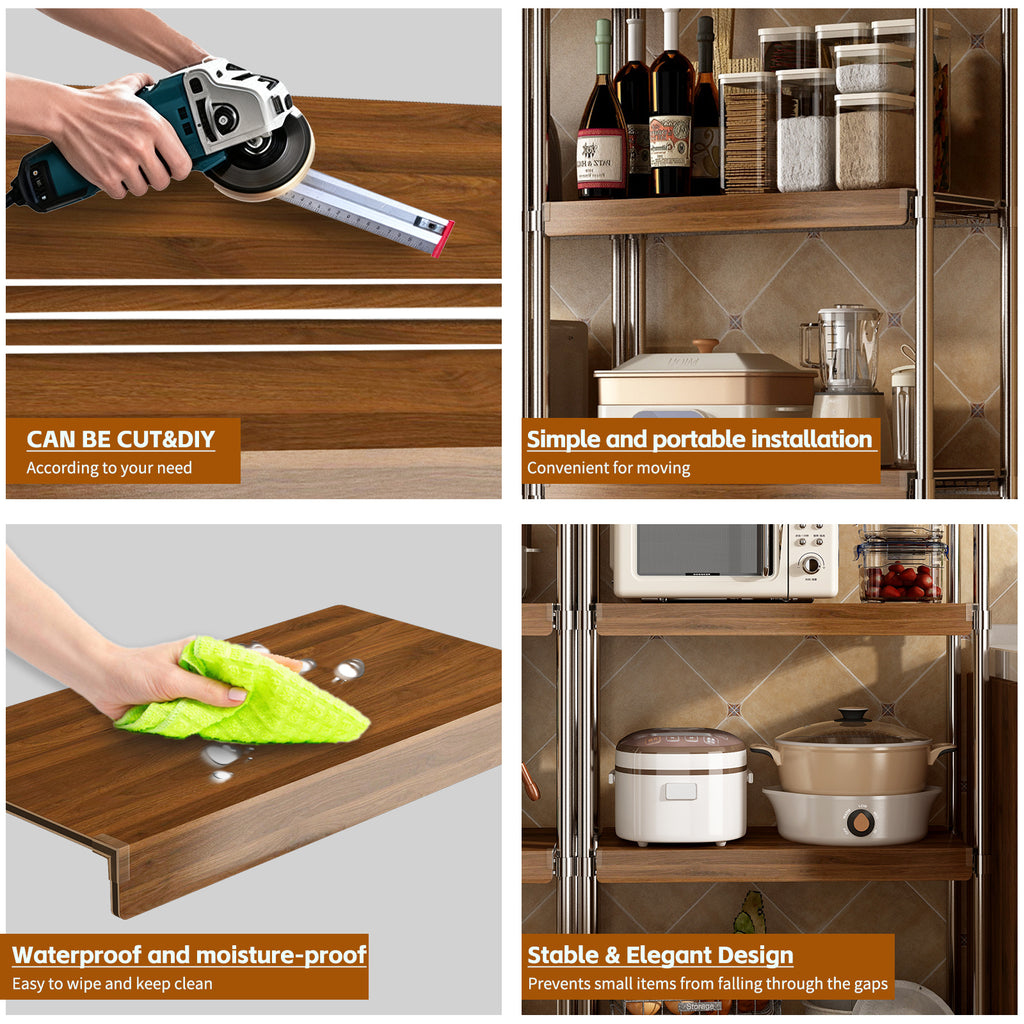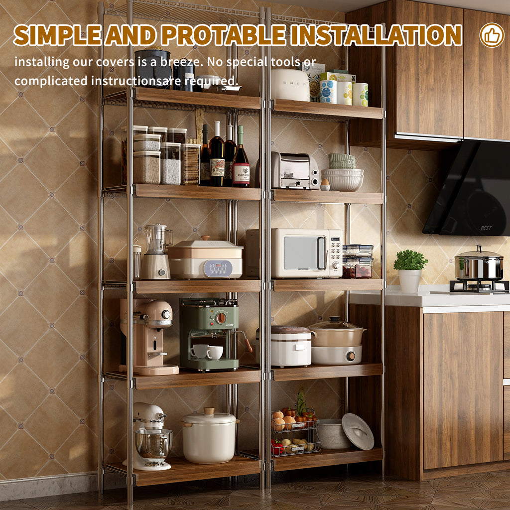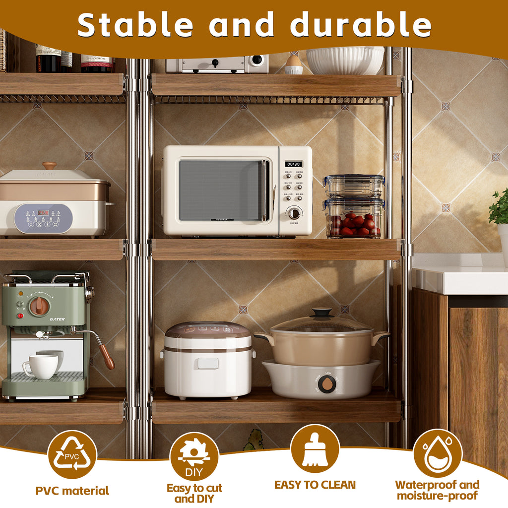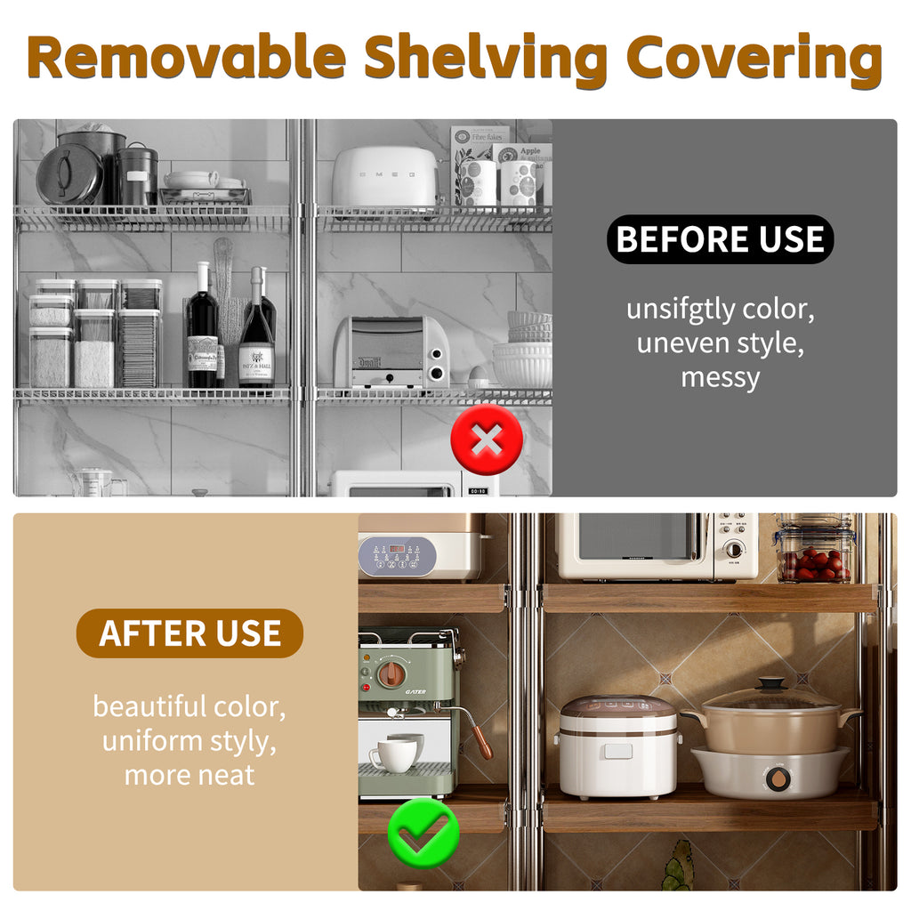• Our wire shelving cover featuring a wooden texture, add elegance and modern touch to your space. Available in various colors and sizes, the pantry shelves covers help traditional wire racks blend seamlessly with your overall decor, enhancing the beauty of your storage area.