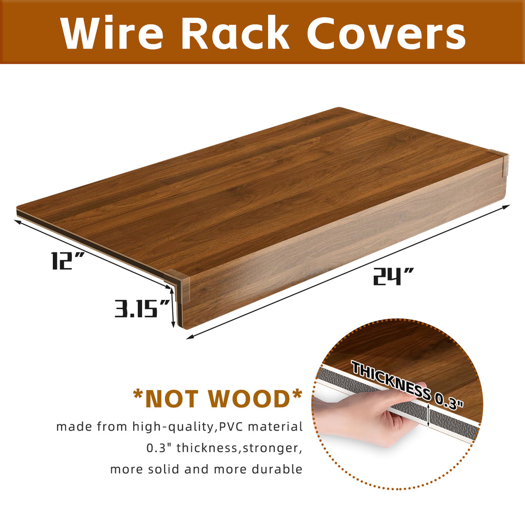• Each package includes 5 PVC wire rack covers (not wood) and 10 acrylic right angle holders; This wire rack covers about 24 x 12 inches; The right angle holders ensure that the product can use longer; Please do not force the right angle side when using it to prevent breakage