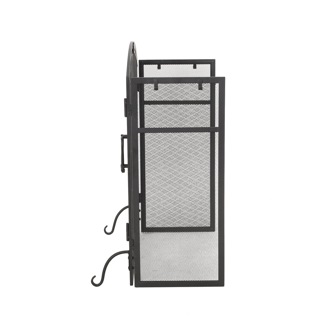 Iron Folding Fireplace Screen With Door and Tools, Matte Black