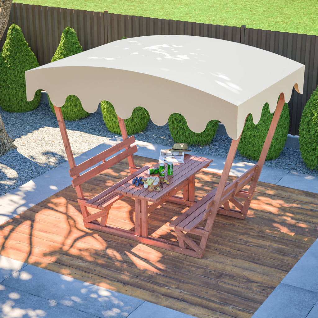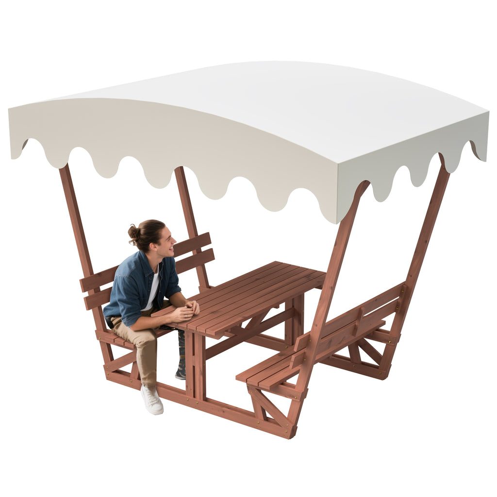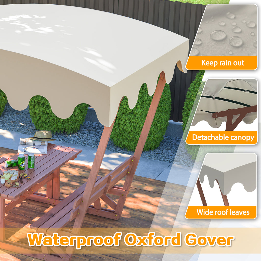 Outdoor waterproof solid wood picnic table and bench set with removable canopy - suitable for all-weather patios, gardens, decks, parks, beaches