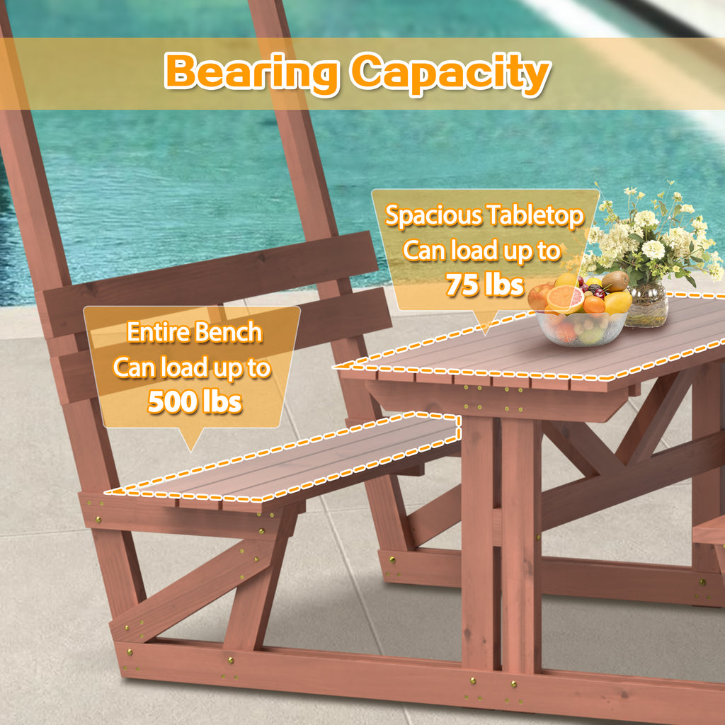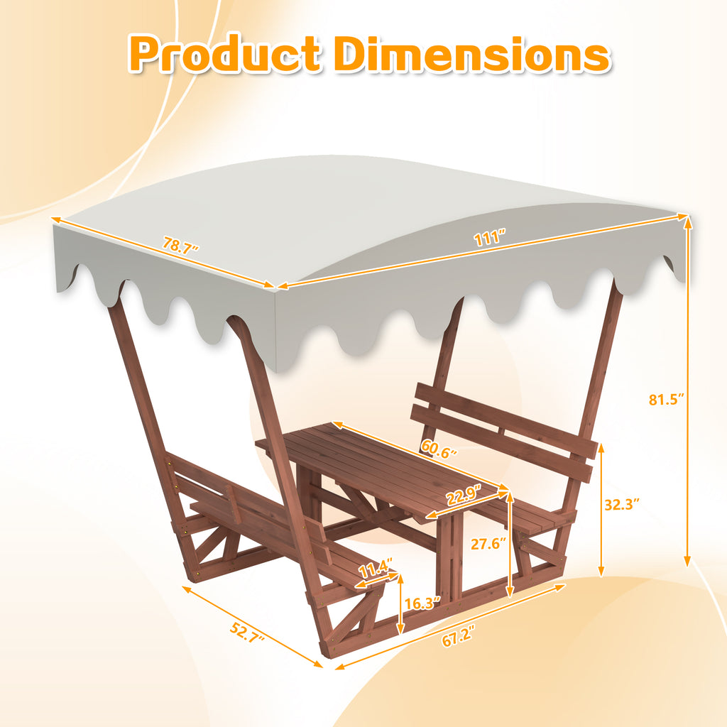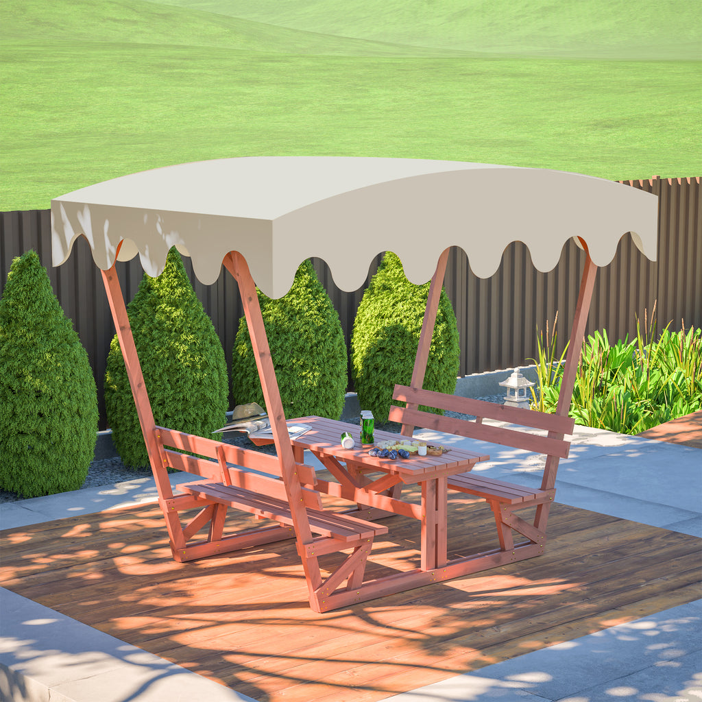 Outdoor waterproof solid wood picnic table and bench set with removable canopy - suitable for all-weather patios, gardens, decks, parks, beaches