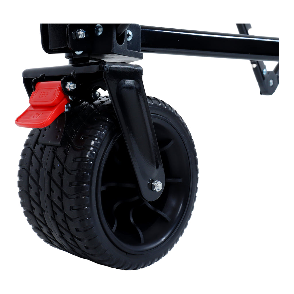 • Smooth Handling and SafetyThe camping handcart is designed for smooth and comfortable use. The adjustable drawbar allows you to pull and steer the cart with ease, ensuring it stays at a comfortable height while remaining clean. Additionally, the two wheel brakes on the 360° swivel wheels provide added safety and control, especially on sloped terrain or when stopping near your car. The large, wide wheels are ideal for various surfaces, including sand and gravel, rolling smoothly and quietly.