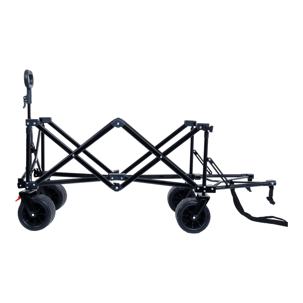 • Versatility and Use CasesThe foldable handcart is perfect for a variety of outdoor activities. Whether you're heading to the beach, fishing, carrying large sand toys for children, gardening tools, or picnic supplies, this trolley is designed to meet your needs. It can also be used as a dog stroller or a shopping trolley. The outer metal eyelets or lashing eyes allow you to secure the load with straps (not included), adding an extra layer of safety during transport.