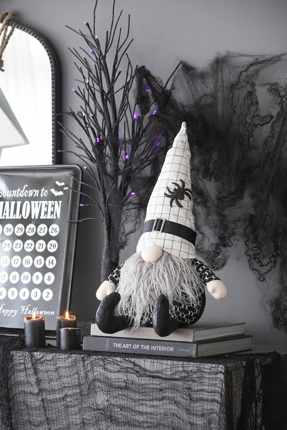 Set of 2, 10.2x5.5x23.5' Fabric Sitting Gnome with White Hat Spider, for Halloween Decor