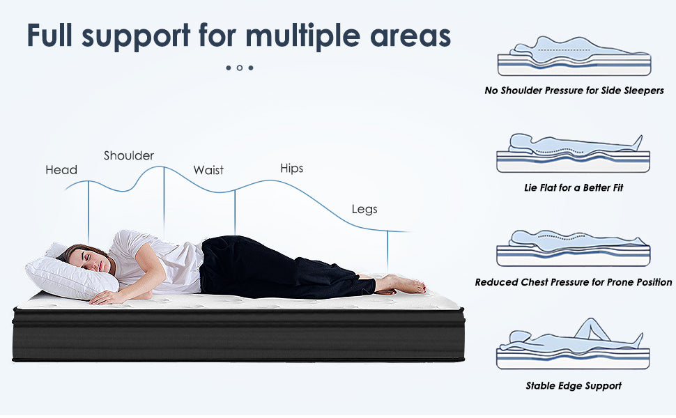 • The medium-firm mattress is suitable for a variety of sleeping positions. Whether you are a back, side, or stomach sleepers, you can feel enhanced support from the head to toe and relief from pressure points. Have a good night’s sleep and wake up refreshed the next day.
