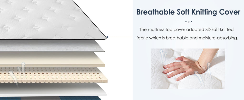 • Featuring high-end knit fabric top cover and cooling memory foam, the mattress is skin-friendly and breathable, giving you a fresh and comfortable sleep experience. Individually wrapped springs in the mattress can not only promote heat dissipation, but also minimize any disturbance caused by the movement of your sleeping partner or pets, helping you enjoy a peaceful night.