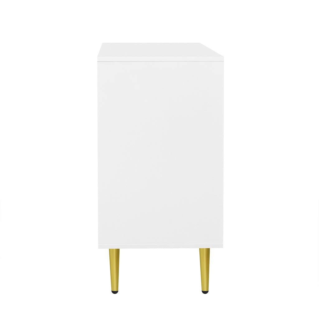 - Crafted from sturdy and durable golden metal, the legs of this TV stand ensure stable support for your television and media equipment. The metallic finish imbues the design with a luxurious texture, elevating the sophistication of your home decor. The unique middle partition design can be used as a display area for decoration and as a layered storage solution, improving space utilization and combining practicality and aesthetics.
