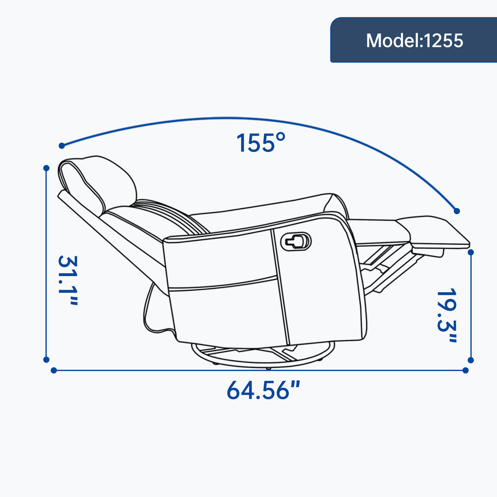 • 360°SWIVEL AND ROCKING RECLINER: The swivel recliner chair has a black metal base that allows for a smooth and gentle 360 degree swivel, and the function of rocking can also make you feel more comfortable and relaxed. You can pull the side button to control the recline of the recliner chair, which means you can get any position you want, it's reclining 155 degrees maximum.