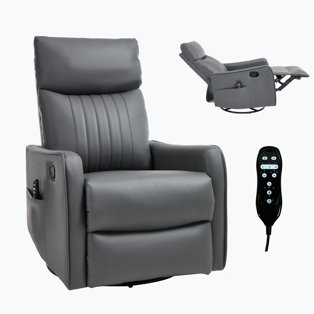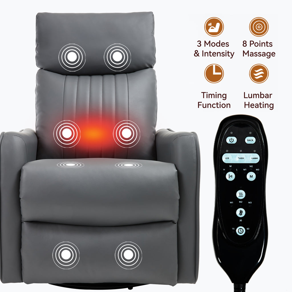 Grey Faux Leather Heat Massage Manual Recliner Chair with Rocker and Swivel for Living Room