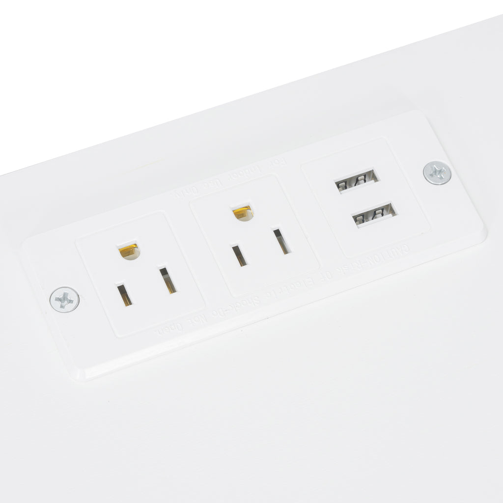The desk includes 2 outlets and 2 USB ports. It's quite convenient to charge your hair dryer, mobile phone, curling iron, and other devices when necessary.