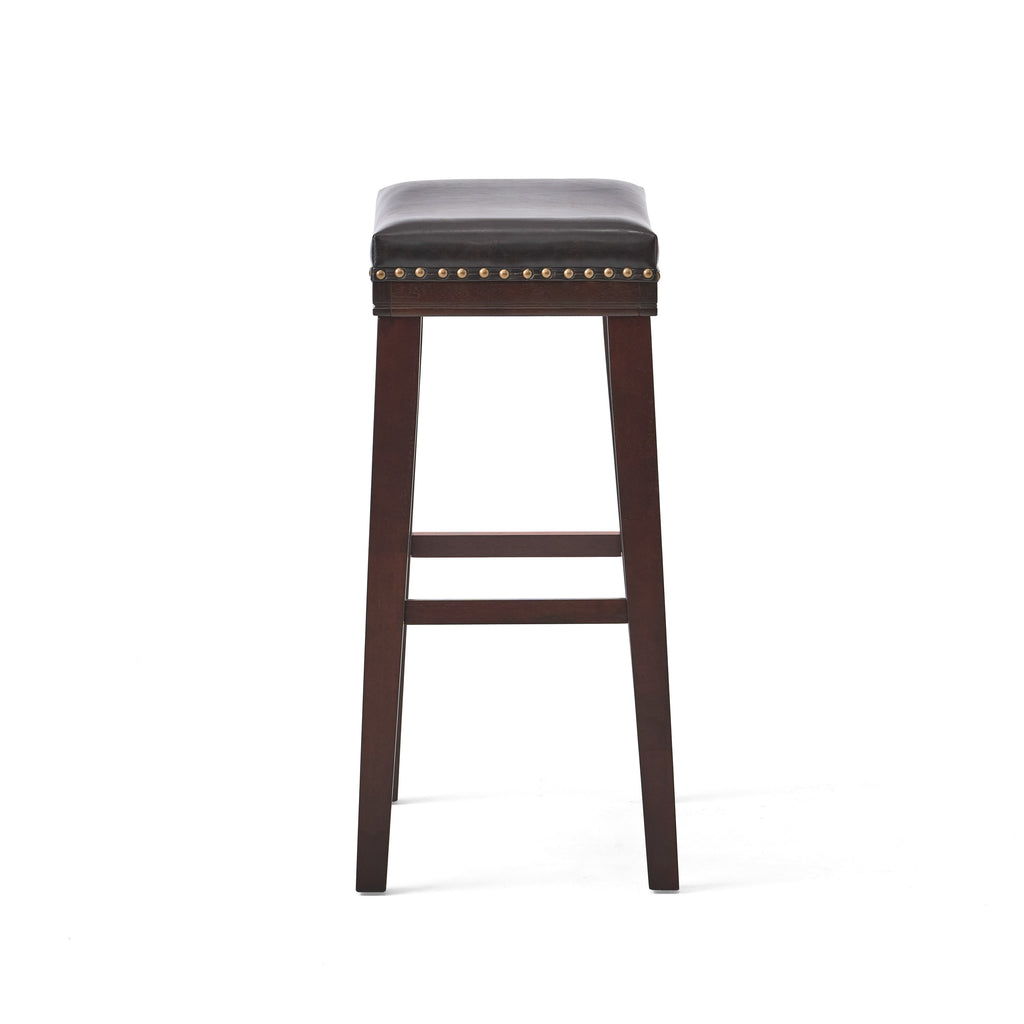 Elegant Saddle Stool with Curved Seat Comfort in Brown Polyurethane Leather and Rubberwood Frame