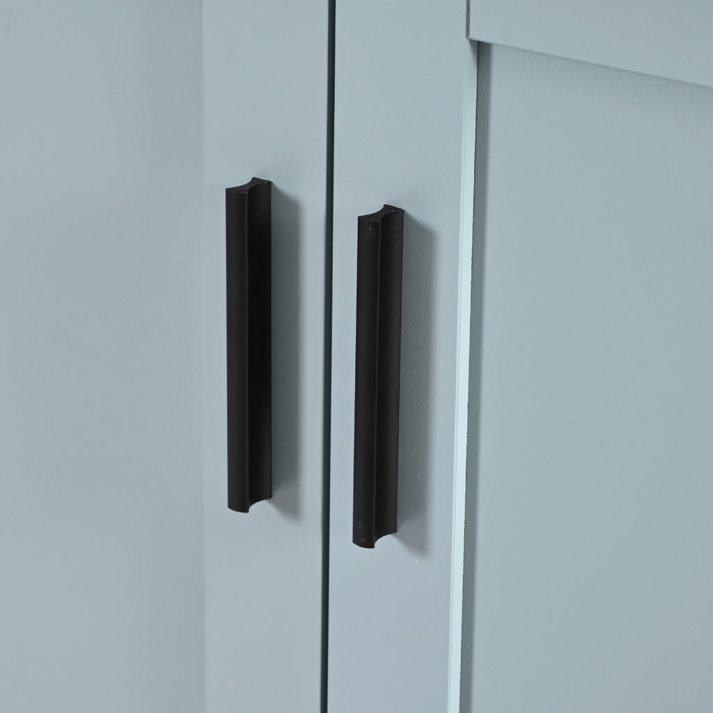Height-adjustable shelves inside the cabinet doors provide flexibility in accommodating various kitchen items of different sizes.