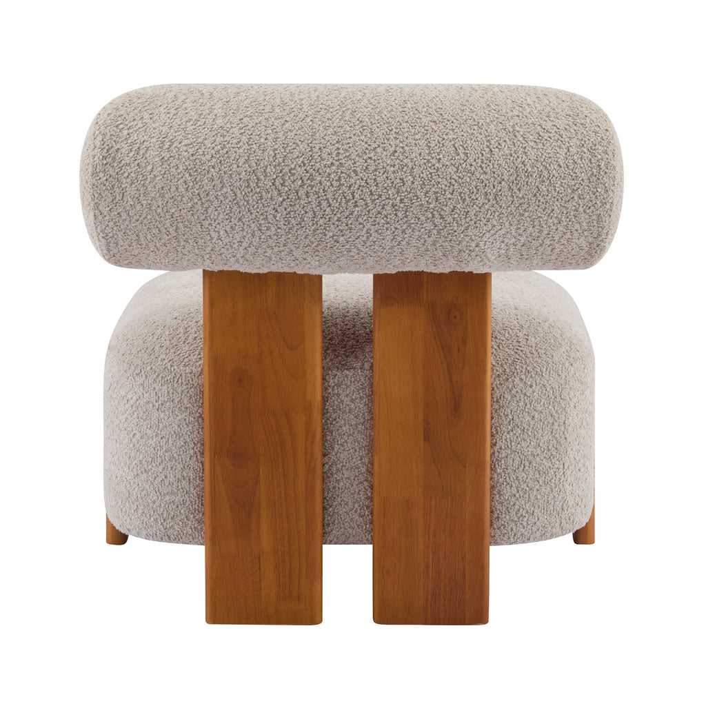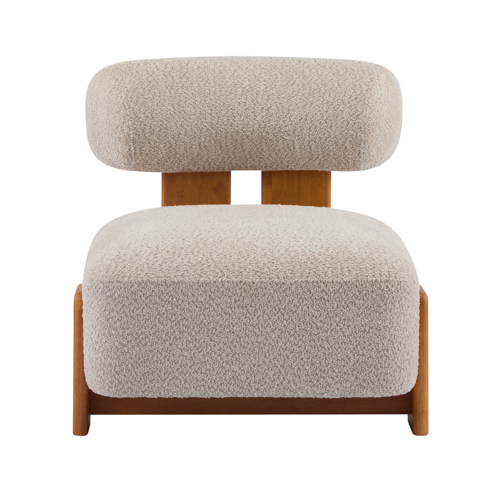 • Durable Solid Wood Frame: Built with a solid wood frame, this chair combines style with durability. The sturdy construction guarantees lasting comfort and stability, while the natural wood finish complements the boucle fabric for a cohesive and attractive look in any room.