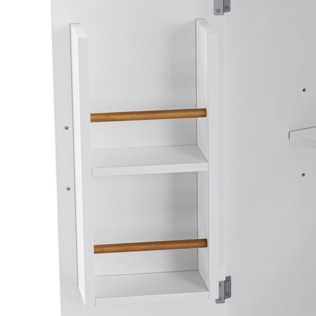 The two barn doors all feature 2-tier shelf racks, providing easy access to soy sauce, barbecue sauce, and other condiments, and sticks that can keep things from falling.