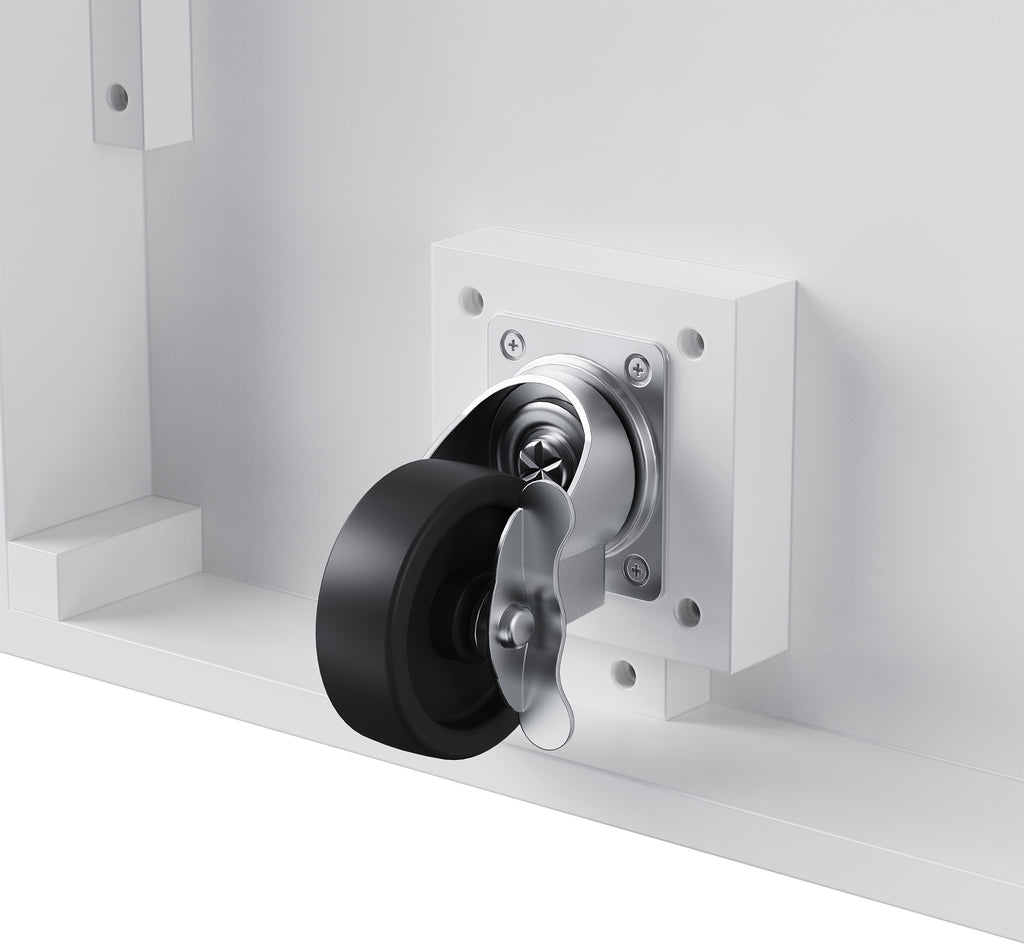 This mobile kitchen island on wheels is equipped with 4 lockable universal wheels. The central placement of one wheel at the base ensures enhanced overall stability during movement.