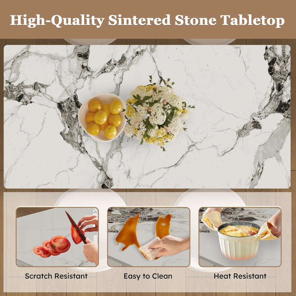 • PREMIUM BURNT STONE TOP: The table features a durable, scratch-resistant burnt stone tabletop. It's easy to clean and highly resistant to heat and stains.
