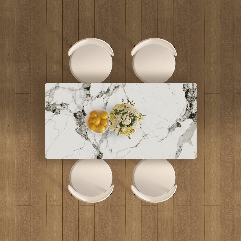 • COMPLETE 5-PIECE SET: This modern dining set includes a spacious table and four matching chairs, providing a perfect seating solution for 4-6 people.