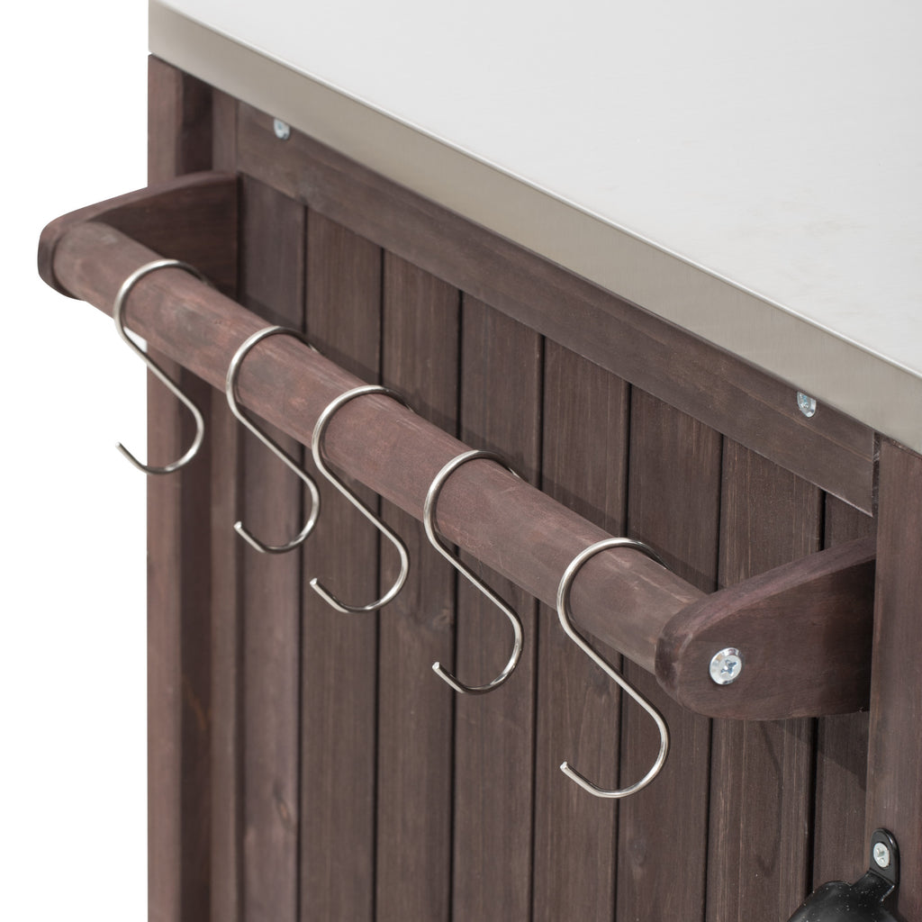 - [Heavy Duty Structure] Crafted from 100% exquisite fir wood, this outdoor bar cart exudes natural charm while prioritizing skin-friendliness and minimal chemical coatings. The 1.2-inch thick 201 stainless steel tabletop offers an easy-to-clean and durable spacious grill table for preparing food ready for cooking. Exclusively designed in your house, we guarantee a long-lasting and sturdy product.