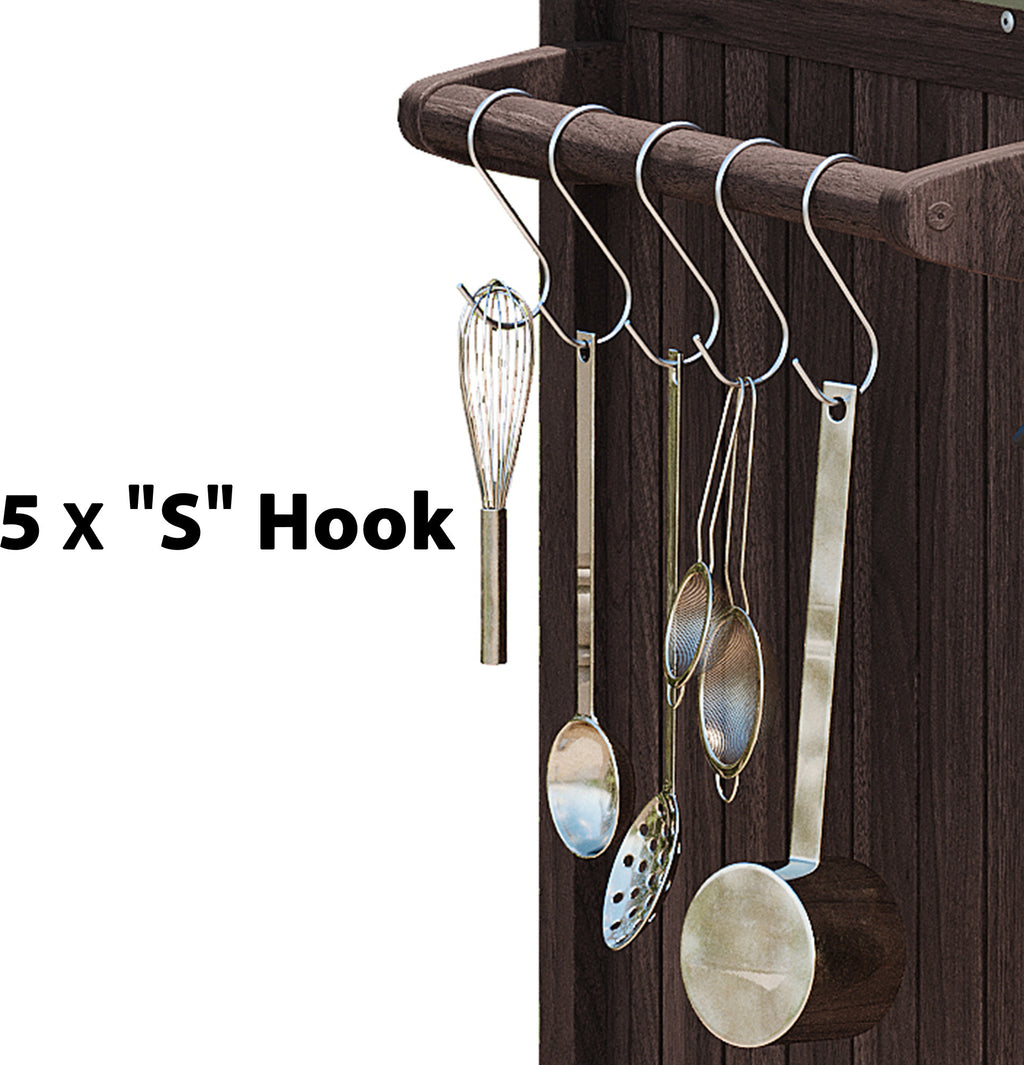 This station is equipped with a high-quality, sturdy spice rack, paper towel rack, 5 S-hook hangers, and a bottle opener to ensure you have all your essentials within reach.