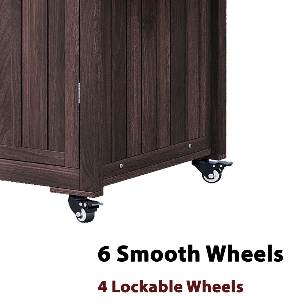 - [Mobility & Waterproof] Our product is equipped with six high-quality wheels featuring brakes, allowing for effortless mobility of your grill to any desired location. Additionally, it includes four lockable wheels, offering enhanced stability compared to similar products that only have two lockable wheels. To prolong the lifespan of your cart, we recommend storing it in a sheltered area during extreme weather conditions.