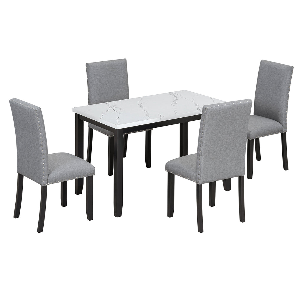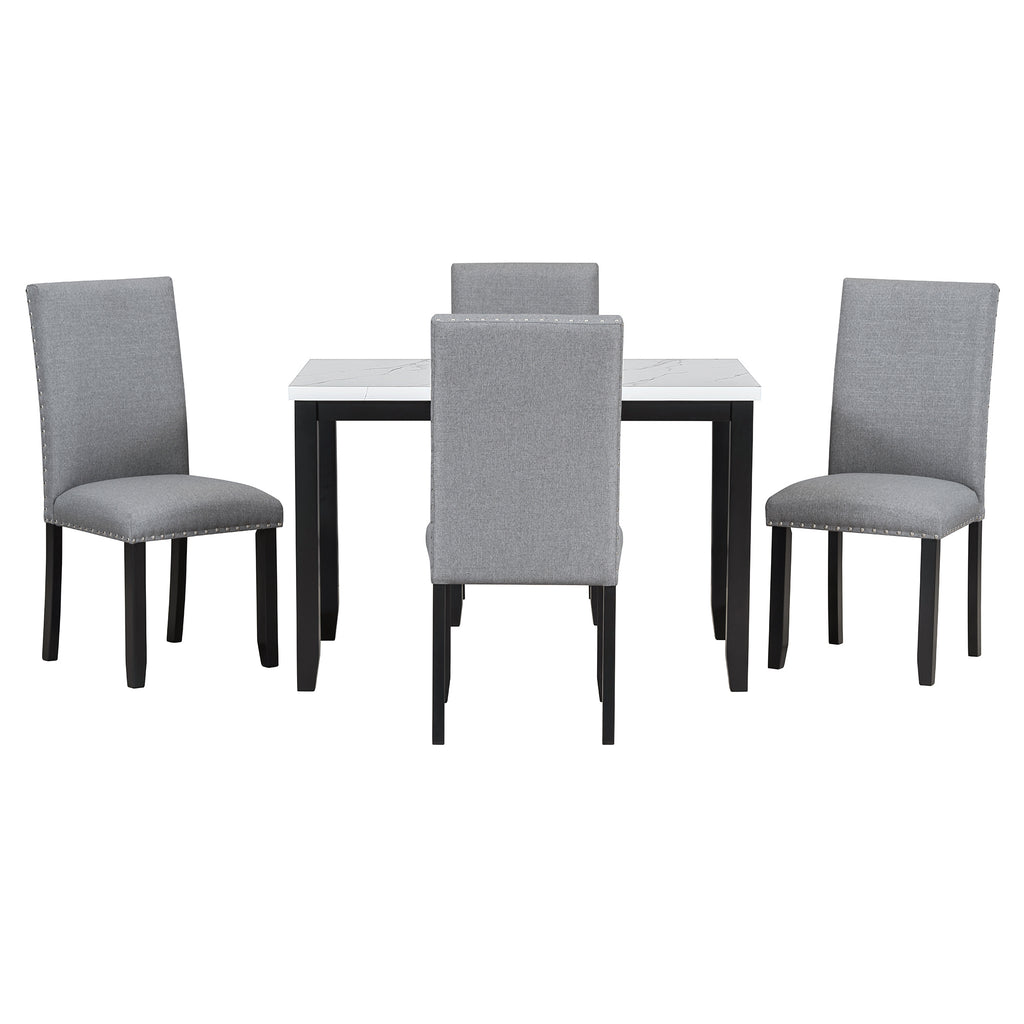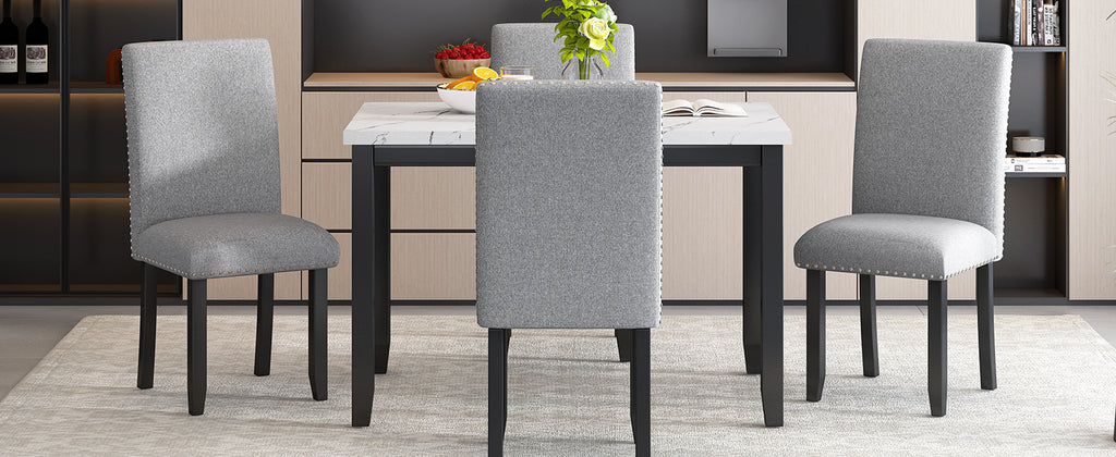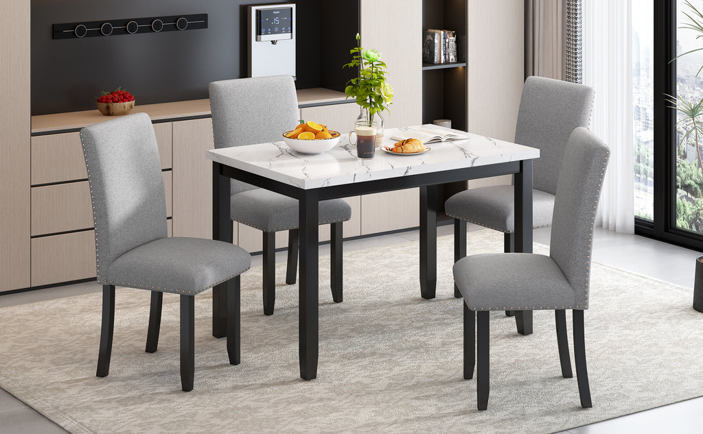 - Elegance and Modern Style: The combination of rubber wood frame and marble table top adds a modern sense to kitchen table and chairs set of 4, and the artificial marble table top of the small dining table has a unique glossy appearance, which is most suitable for any dining space, kitchen area, etc.