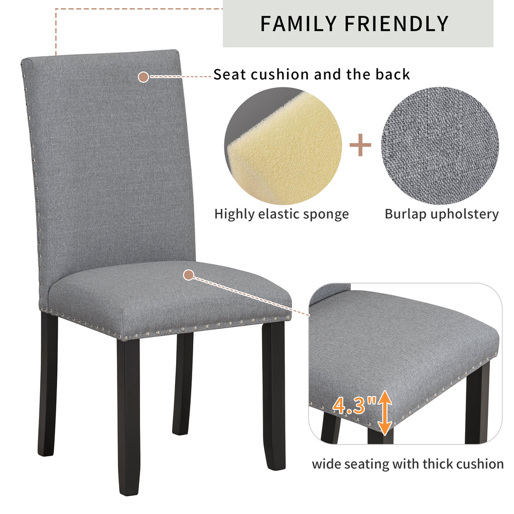 Both the seat cushion and the back of this wooden dining set are padded in highly elastic sponge and tightly woven burlap upholstery. 4.3' thicken cushion for upgraded comfort. Each chair comes complete with wide seating, the seats are formulated for easy spot cleaning with the wipe of a damp cloth.