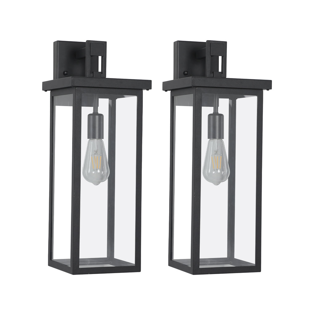 20'(H) Set of 2 Modern Outdoor Wall Lanterns with Black Metal Frame and Clear Glass