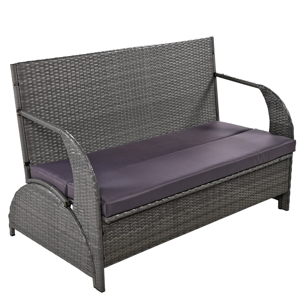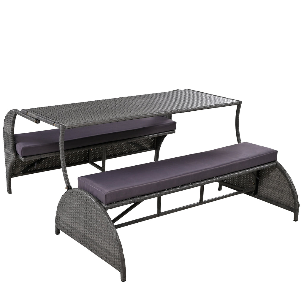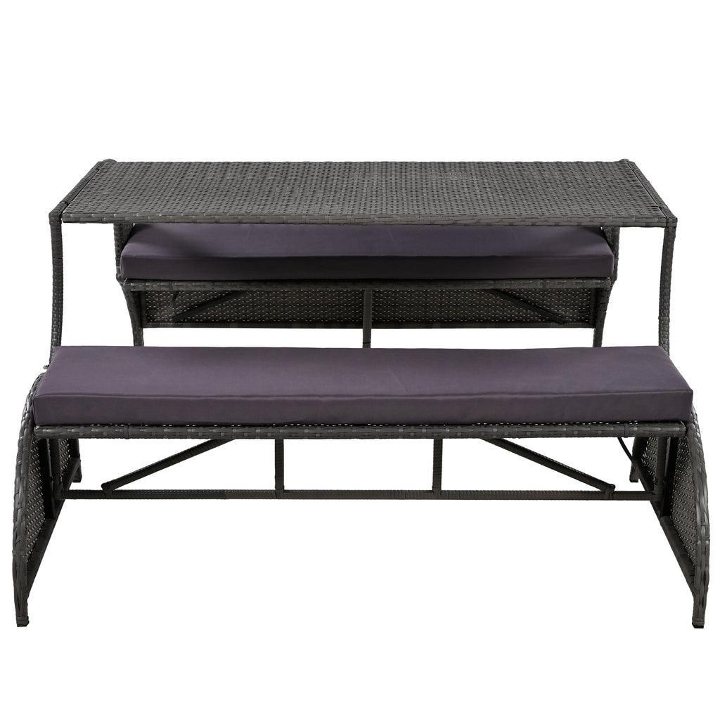 U_STYLE 2-in-1 Convertible Picnic Upholstered Bench Table,57.1' Outdoor Loveseat,Portable Picnic Table Couch,Convertible To 4 Seats&1 Table,For Garden,Lawn,Backyard,Porch,Patio