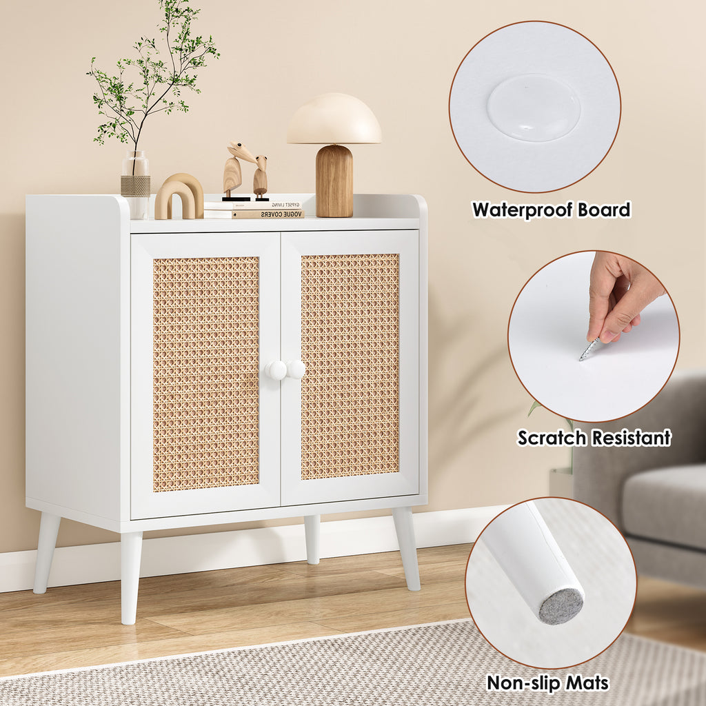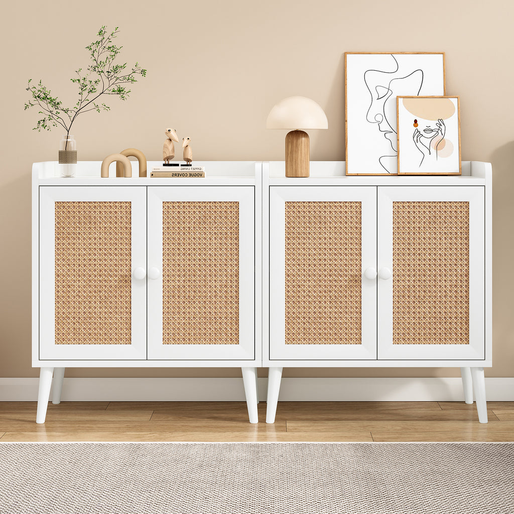Sideboard Buffet Cabinet with Storage, Bar Liquor Cabinet with Rattan Decorated Doors, Credenza Console Tablefor Dining Room, Living Room,Hallway