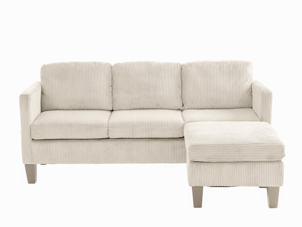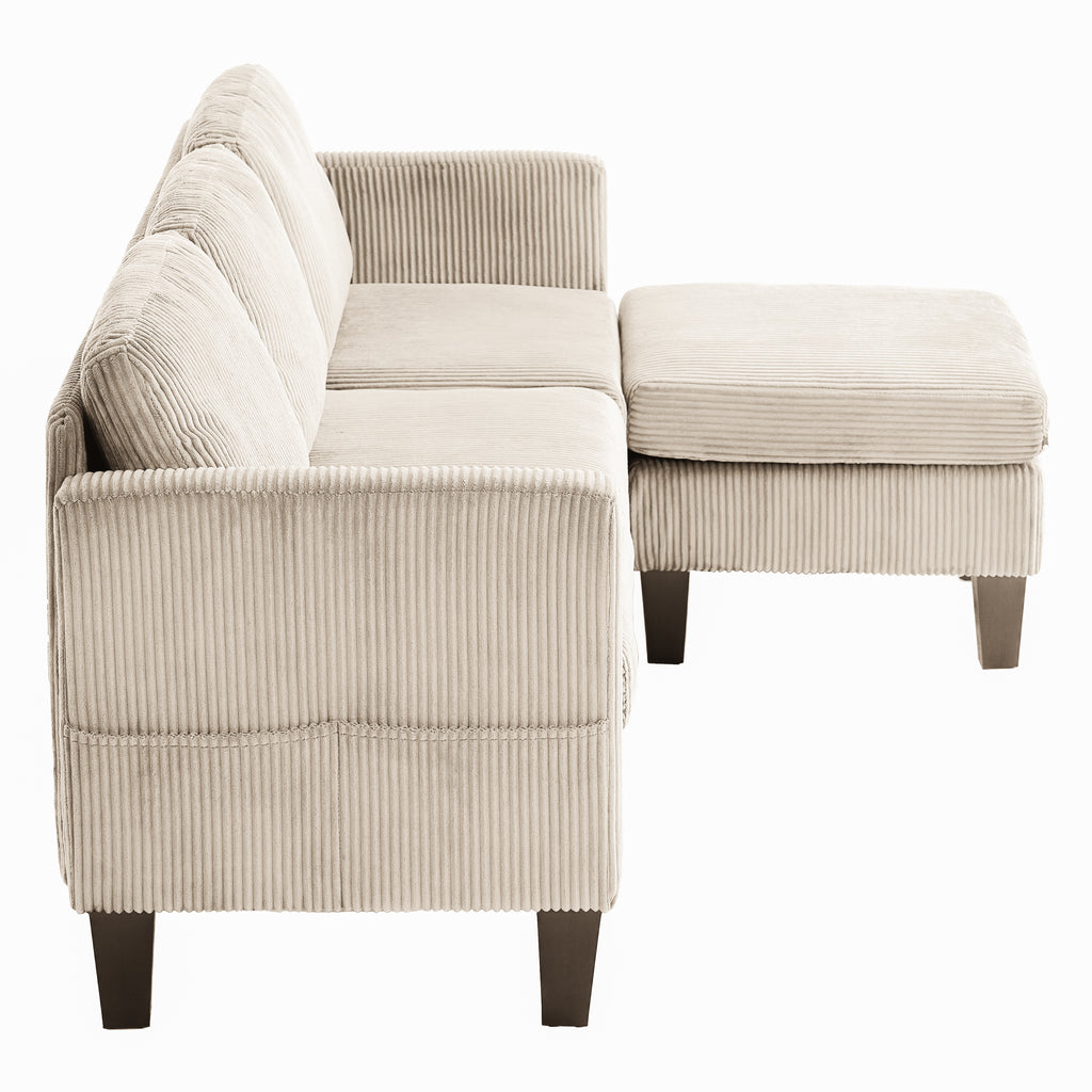 L-Shaped Sofa with Padded Corduroy: Multi-functional Design, Modern Luxury Appearance - Ideal for Living Rooms, Apartments - Easy Assembly & Maintenance,off-white