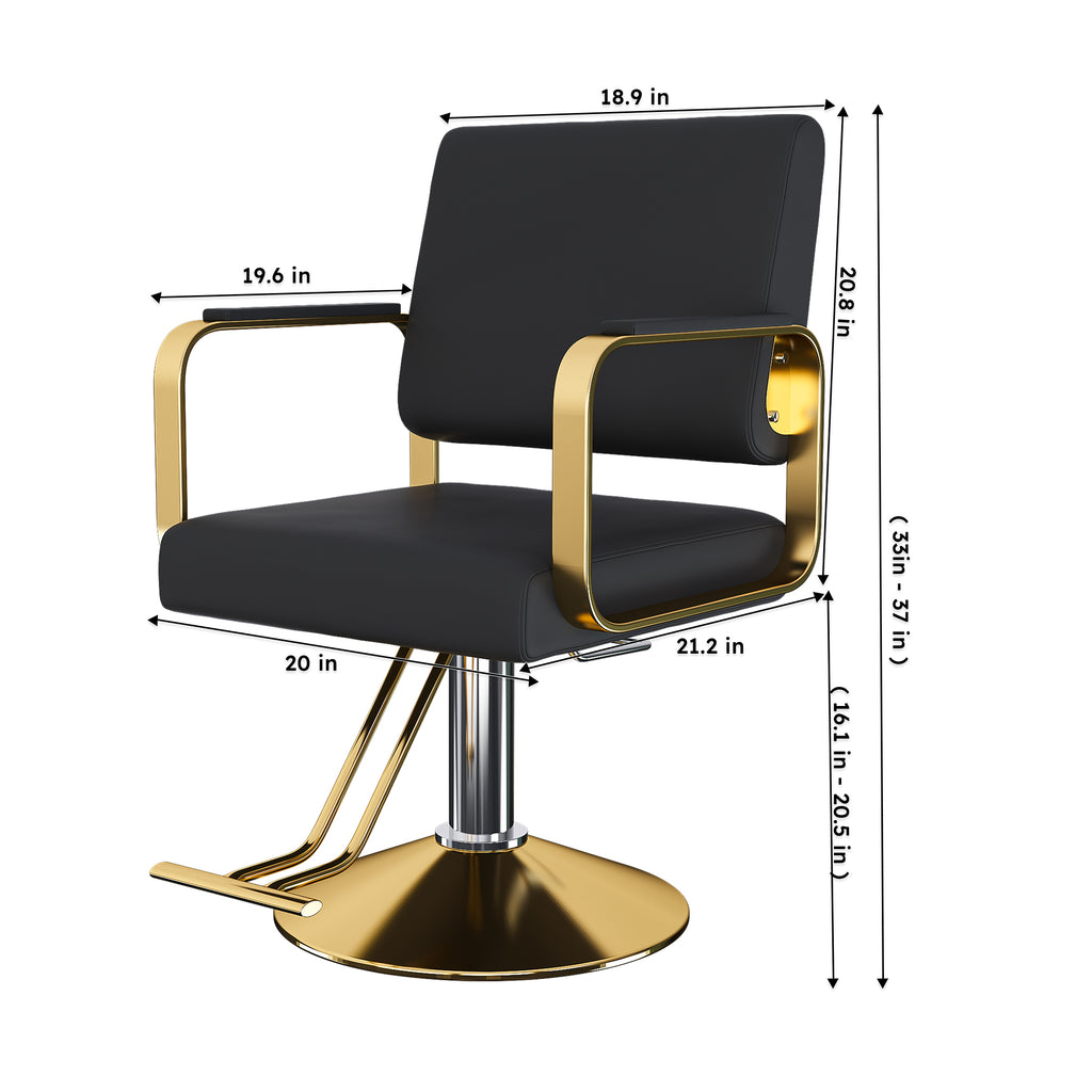 Hydraulic Salon Chair - 360° Swivel Barber Stylist Chair with Pump, Non-Tilting Design in Black and Gold PU Leather