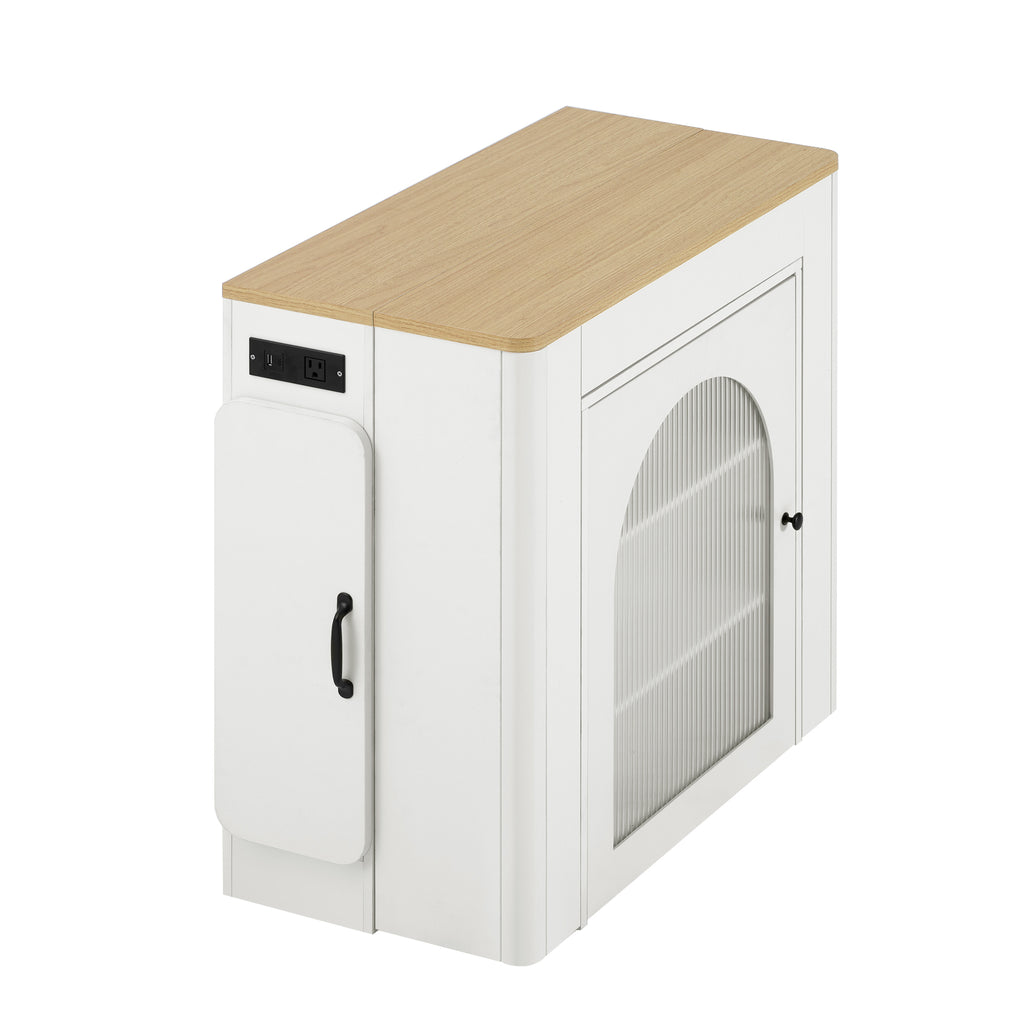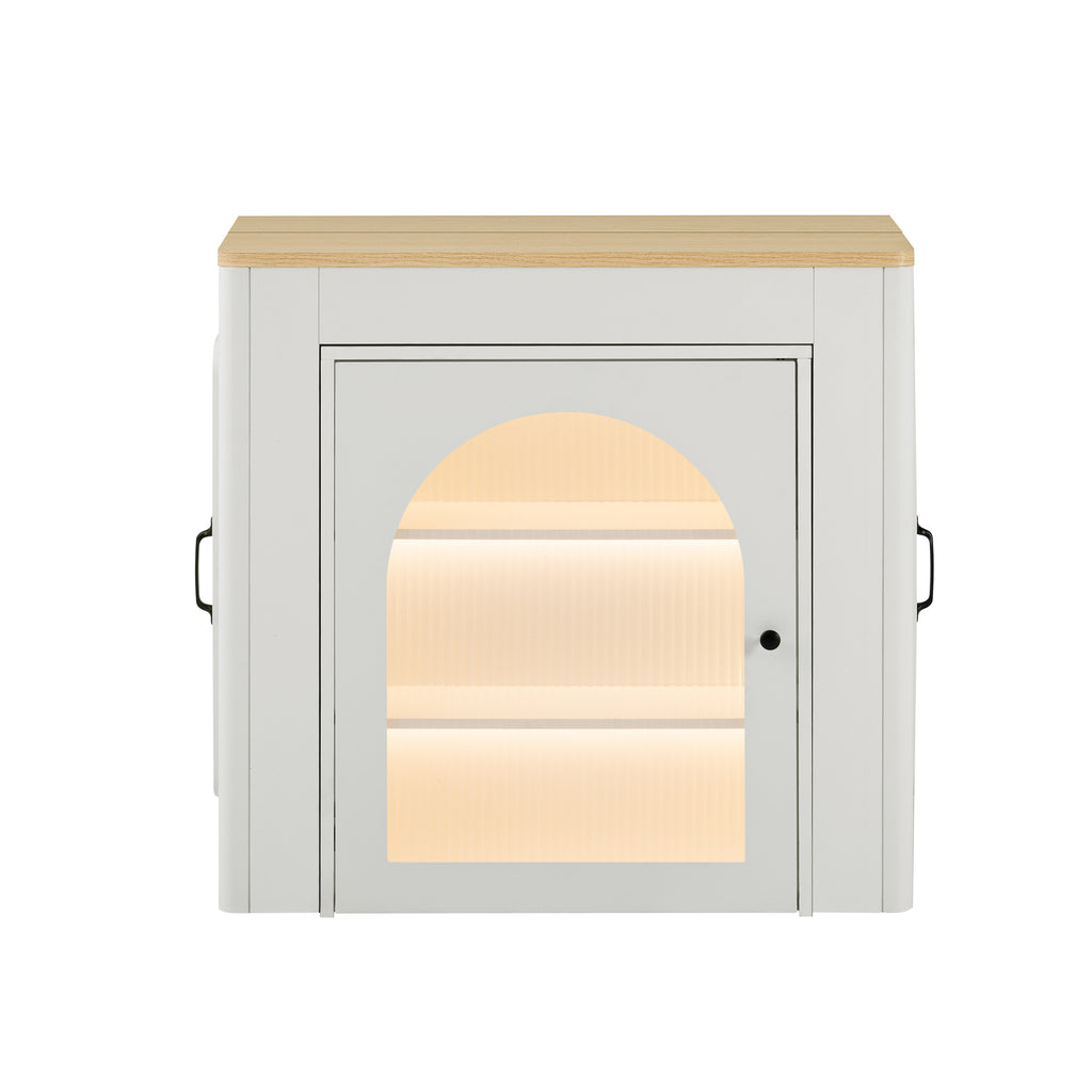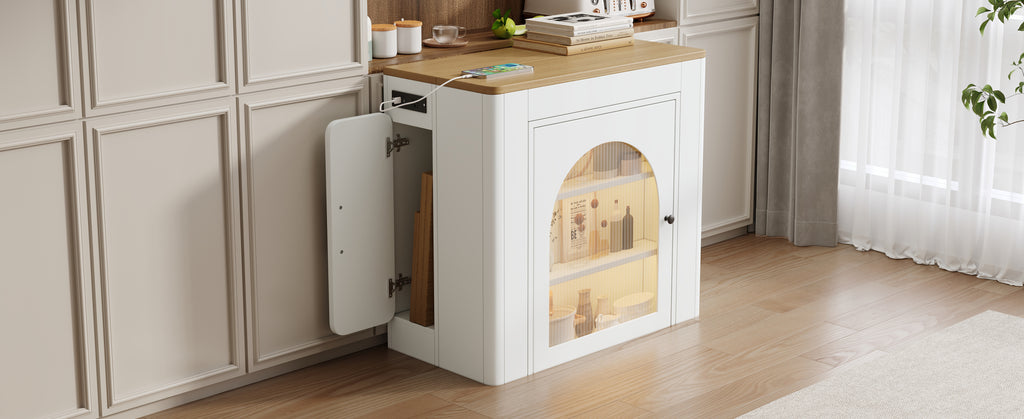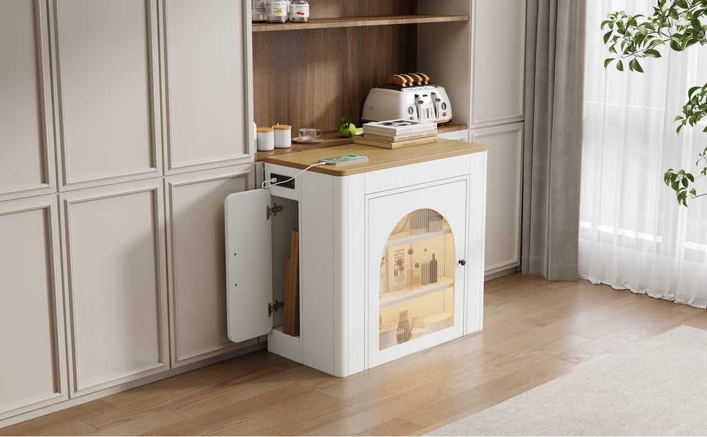 Built-in LED light strip with gradient lighting effects adds a warm, cozy atmosphere to your space. Integrated multi-port power outlet (includes USB, Type-C ports) allows convenient charging of phones, tablets, and small appliances nearby—perfect for modern, smart lifestyles. Note: LED light tones vary by cabinet color: warm light for white cabinets, cool light for black and grey-blue cabinets.