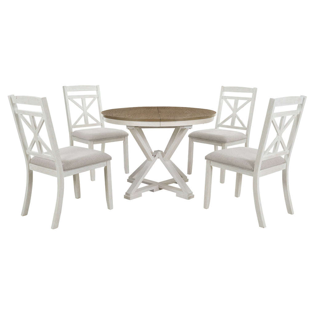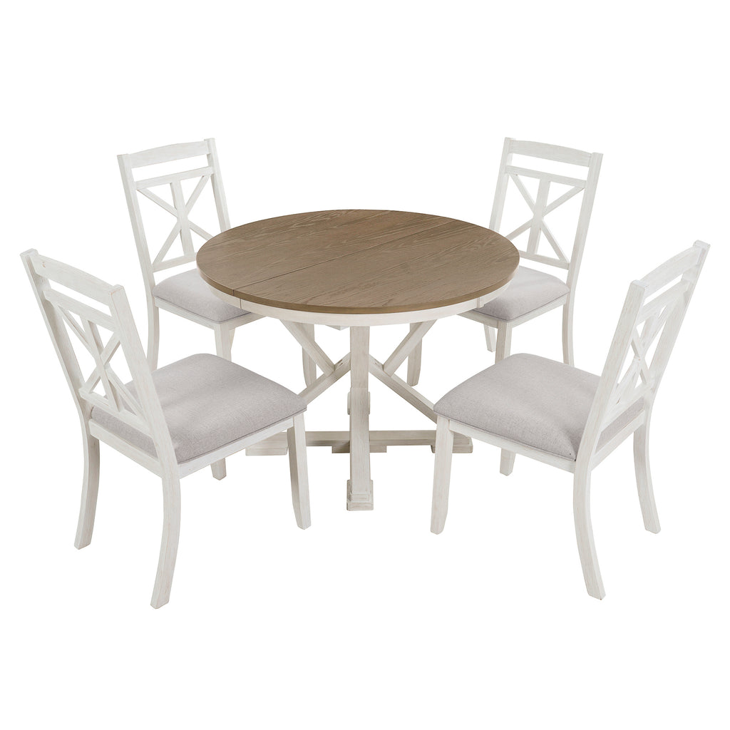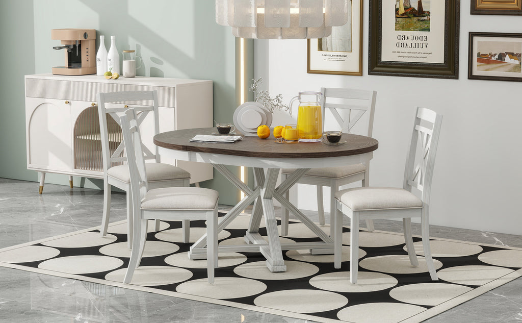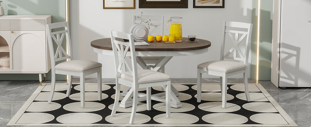 - Vintage Flair: This design-inspired vintage dining table set includes a 12-inch extendable round table and four dining chairs. There are two colors to choose from, gray and brown. No matter which color dining table and chair set you choose, it will add a strong vintage vibe to your home decor.This dining table and chair set creates a simple and elegant atmosphere, perfect for use in the kitchen, dining room or living room.