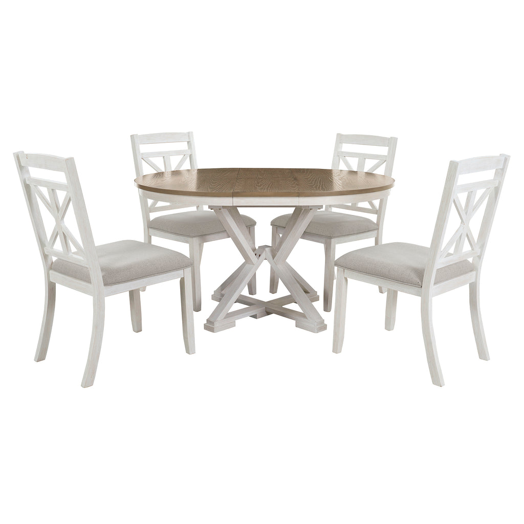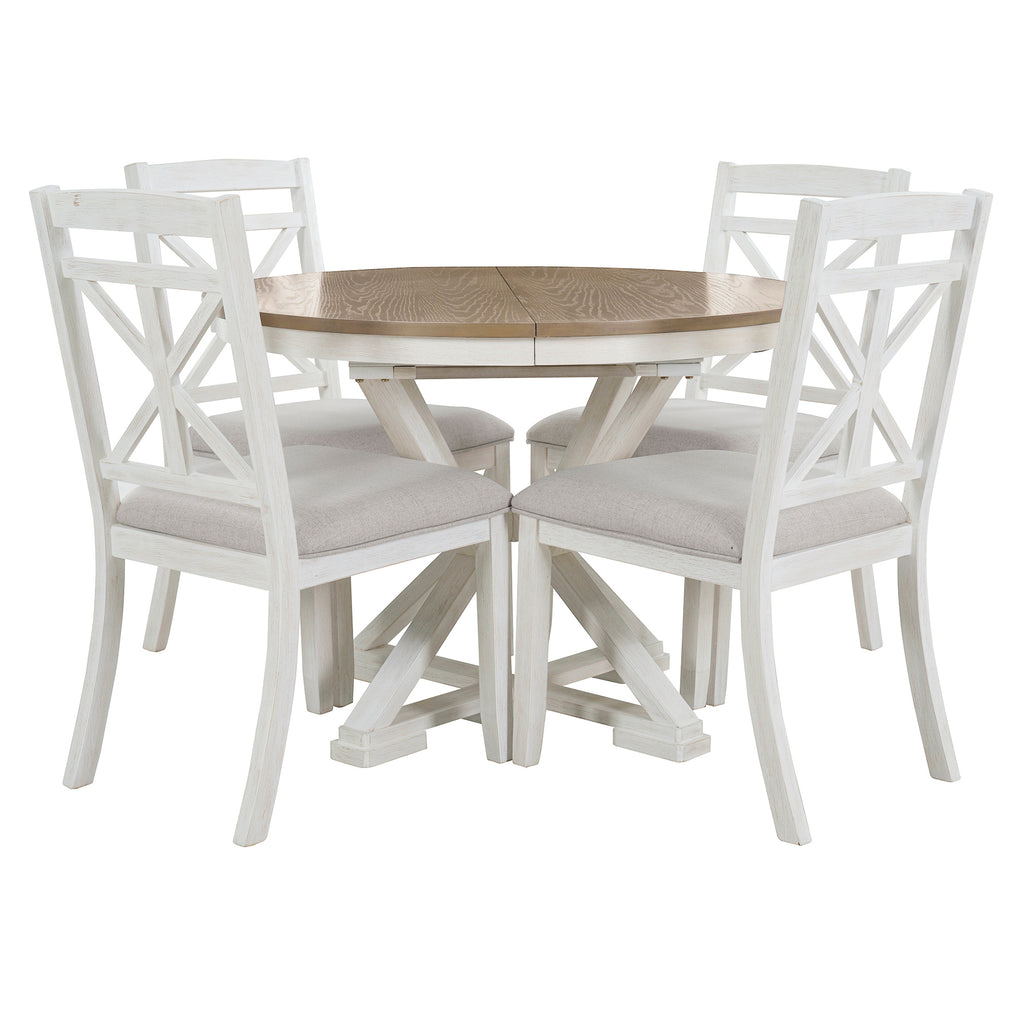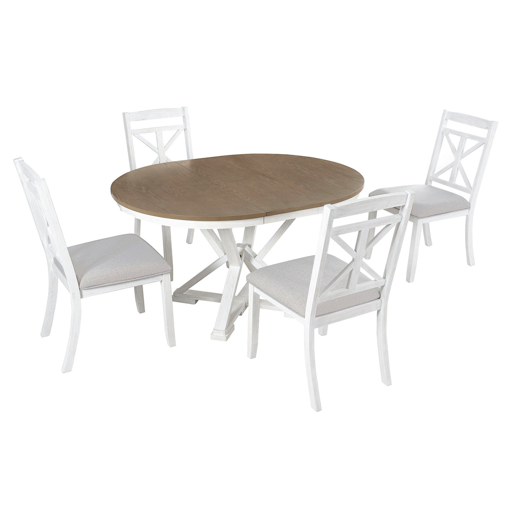 - Vintage Flair: This design-inspired vintage dining table set includes a 12-inch extendable round table and four dining chairs. There are two colors to choose from, gray and brown. No matter which color dining table and chair set you choose, it will add a strong vintage vibe to your home decor.This dining table and chair set creates a simple and elegant atmosphere, perfect for use in the kitchen, dining room or living room.