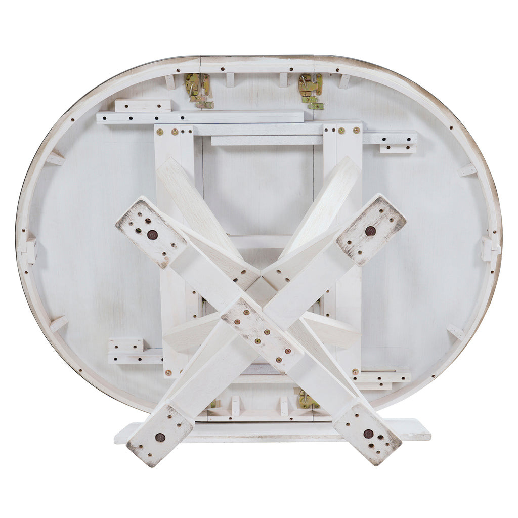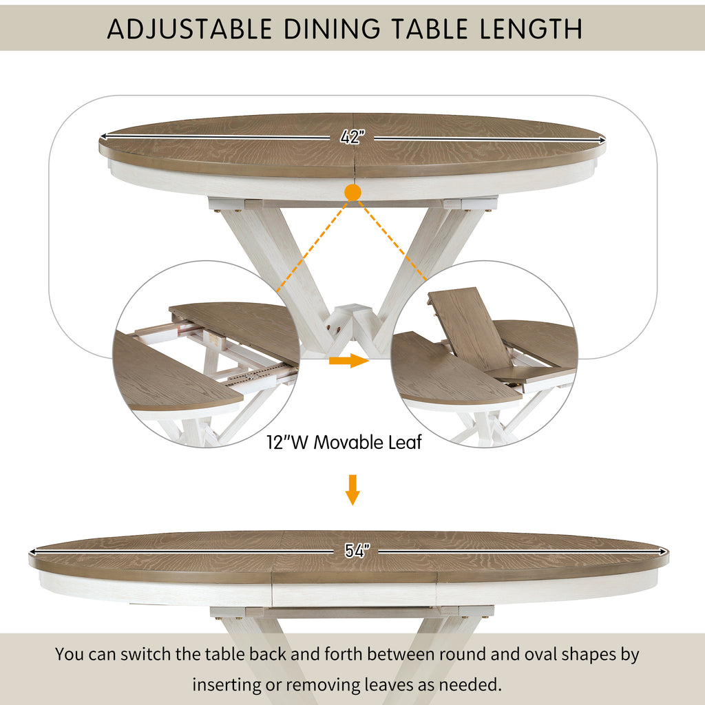 - Adjustable Dining Table Length: The Round Dining Table comes with a 12-inch leaf that creates an oval dining table, which is used to accommodate more people and for different lengths of use. The total length of the dining table is 54 inches and 42 inches with the boards removed. You can switch the table back and forth between round and oval shapes by inserting or removing leaves as needed. The adjustable design makes your daily life easier.