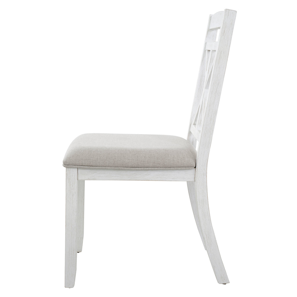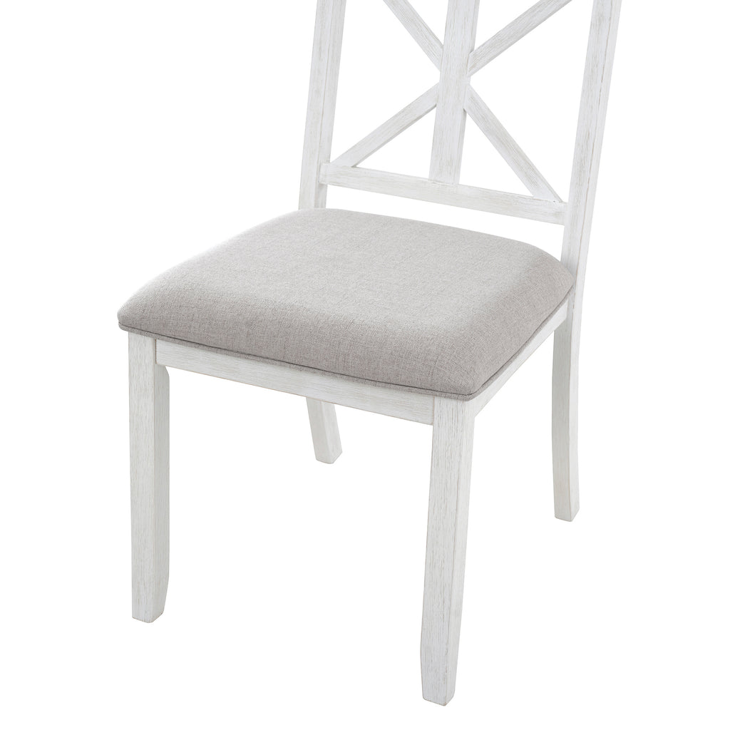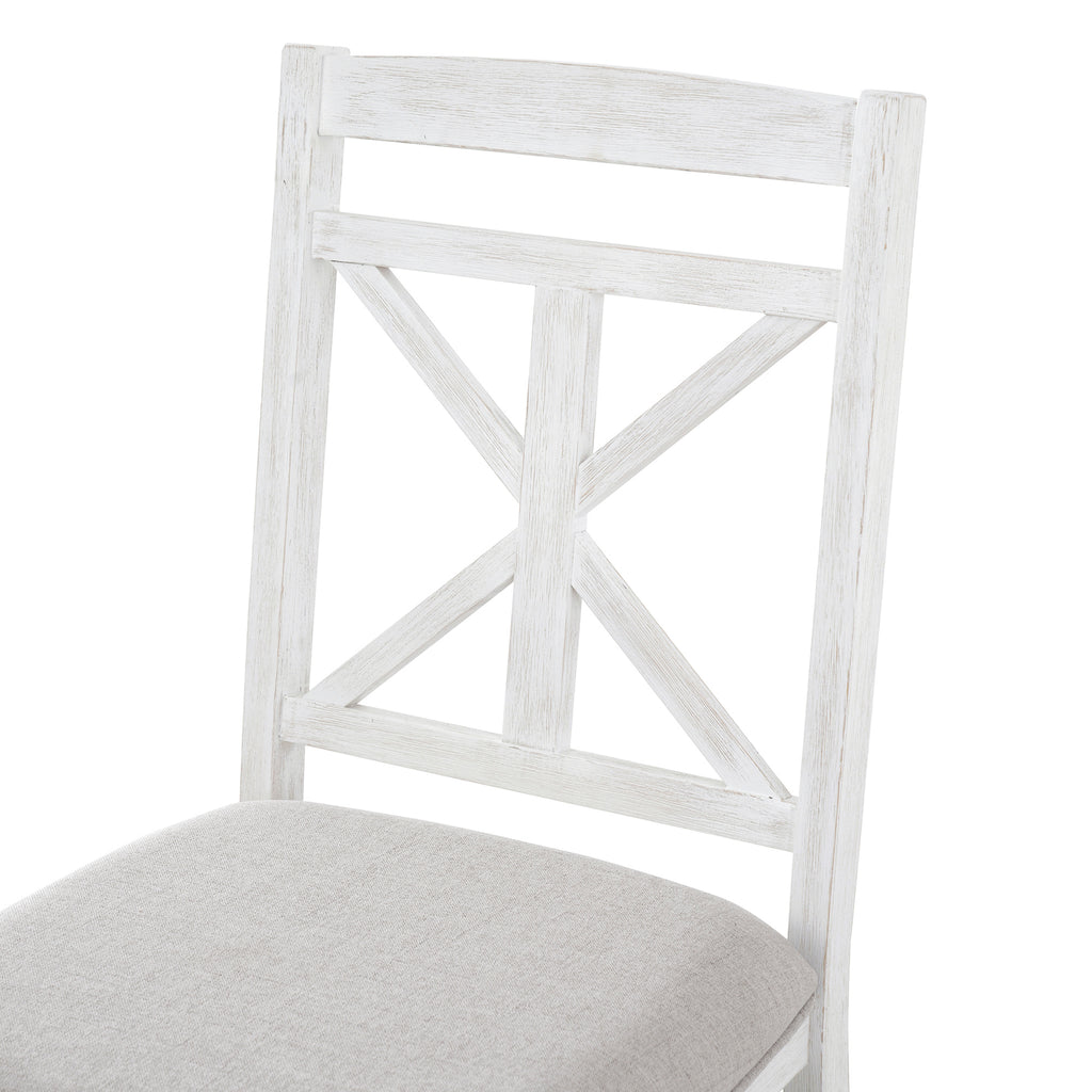 - High Quality: This vintage dining table set with wood pattern has good quality and adds understated elegance to your dining room. The main frame of the dining table set is made of solid rubber wood to ensure stability and durability for daily use. All four chairs are wrapped in linen as the seat cushion and filled with soft foam to provide you with a comfortable sitting experience. The weight capacity of the table and chair is separately 220 LBS and 250 LBS/PCS.