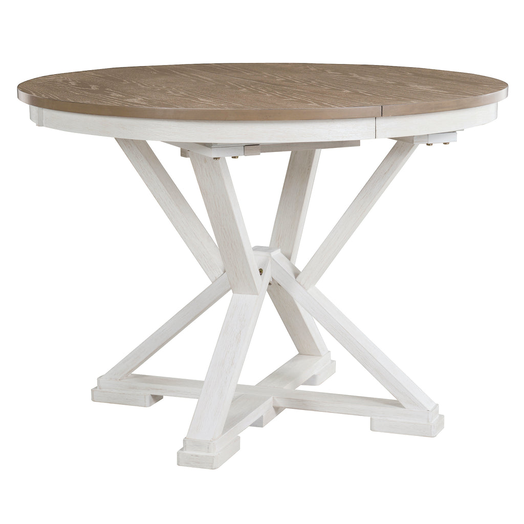 The Round Dining Table comes with a 12-inch leaf that creates an oval dining table, which is used to accommodate more people and for different lengths of use. There are two colors to choose from, gray and brown. The total length of the dining table is 54 inches and 42 inches with the boards removed. You can switch the table back and forth between round and oval shapes by inserting or removing leaves as needed. The adjustable design makes your daily life easier.