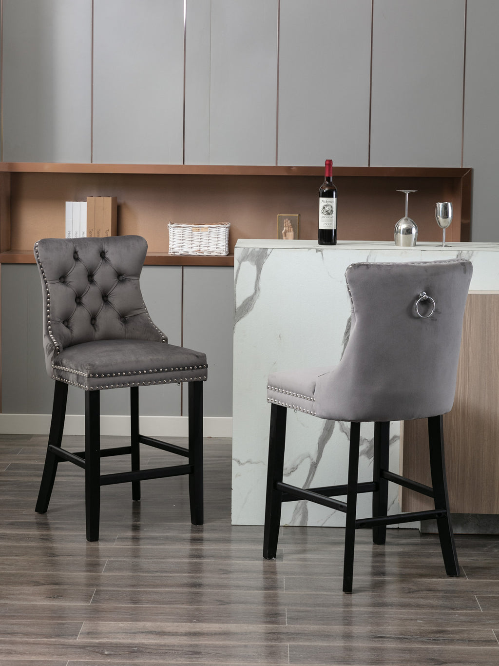 - These barstools are made of high-quality velvet fabric, which is thick and luxurious, the touch is very delicate. This velvet bar chairs set featuring a very modern mid-century look.