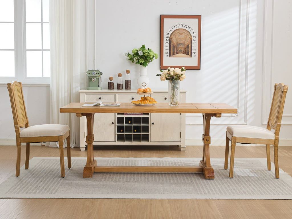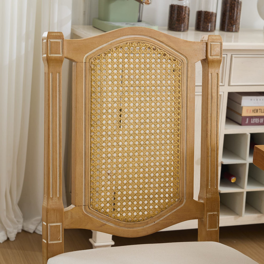 Solid Wood Rattan-Back Dining Chair, Matte Linen Cushion with High-Resilience Foam & S-Springs, Perfect for Rustic/Natural Style Dining Room, Café with Classic & Durable Design,Beige,Set of 2,SW1874BG