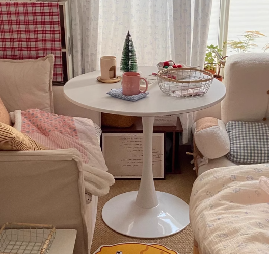 • MODERN KITCHEN DINING TABLE: Modern sturdy round dining table with clear and neat grain. Mainly used as a kitchen table, but also as a coffee/tea table, living room table, office desk for minimalists in small space apartments/studios.