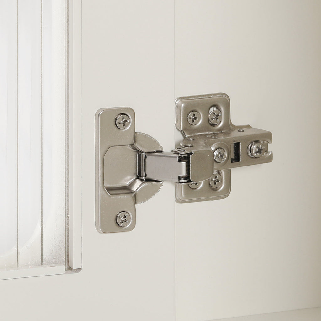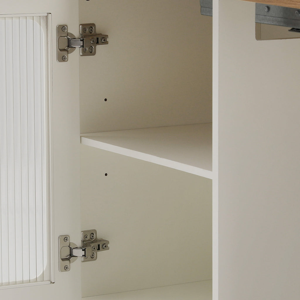 Each side features an adjustable shelf. Height-adjustable shelves inside the cabinet doors provide flexibility in accommodating various kitchen items of different sizes.