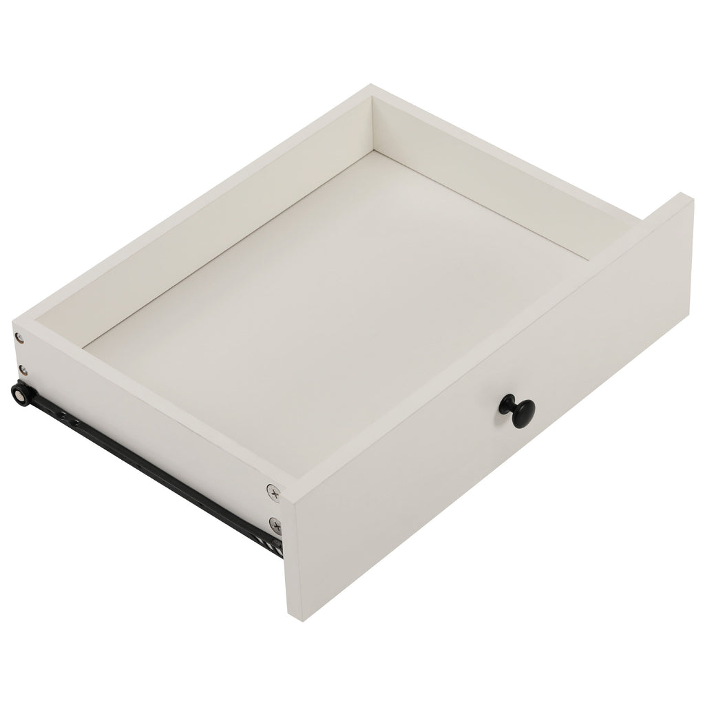 The bottom of the extendable tabletop and storage rack features two movable casters. This allows you to effortlessly pull out the tabletop and storage rack when in use. It enhances the product's mobility, making it adaptable to various spaces in your home.