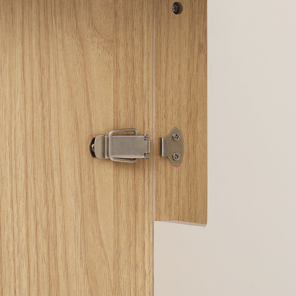 The metal locking mechanism beneath the tabletop securely fastens each tabletop to the cabinet frame. This enhances overall stability and functionality, ensuring the product remains firmly connected and free from wobbling during use.