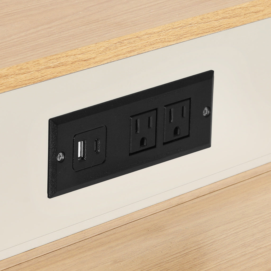 This elegantly designed kitchen island includes a sophisticated built-in power outlet, featuring 2 AC outlets, 1 USB port and 1 Type-C port to effortlessly meet all of your kitchen appliance power requirements.