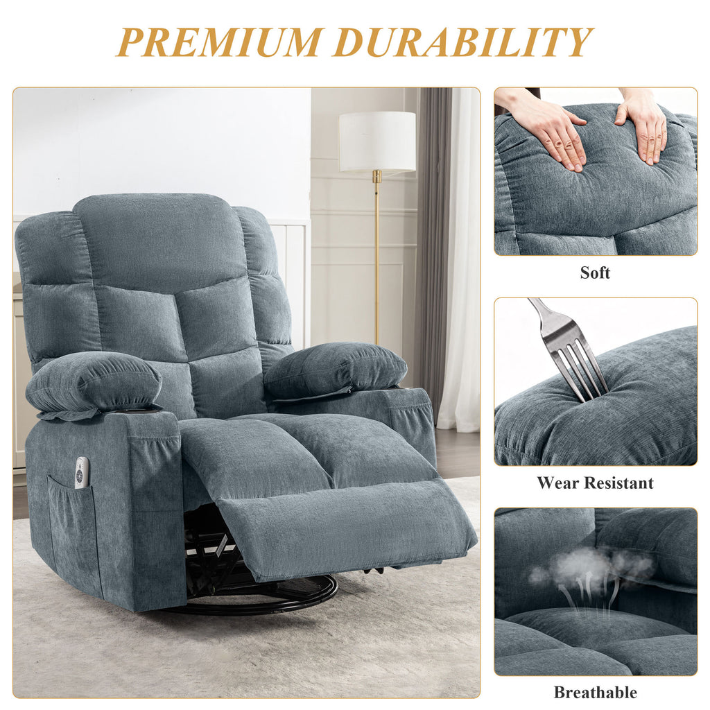 Oversized Massage Swivel Recliner Chair with Lumbar Heating for Living Room Rocker Recliner with Cup Holders and USB Charge Port, for Adult