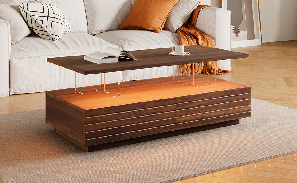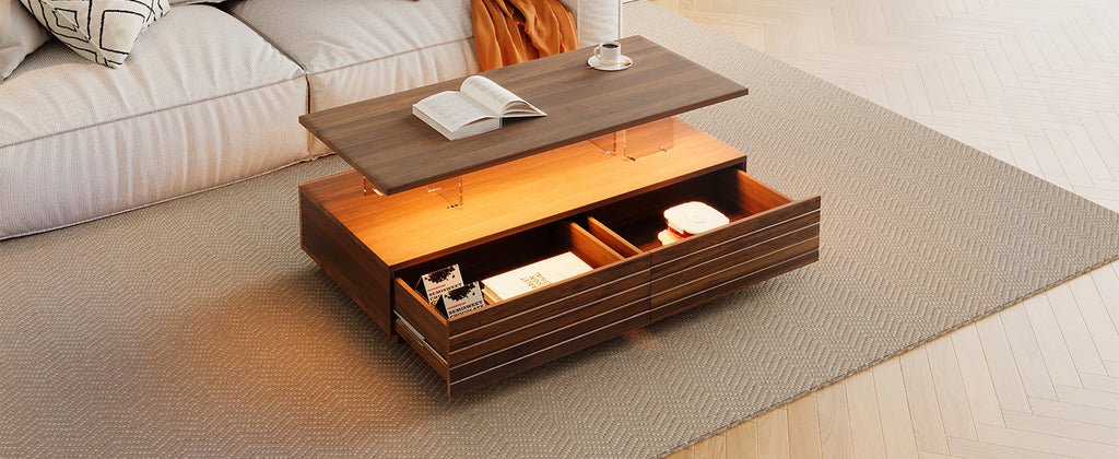 - Multi-Color LED Lighting: The coffee table features LED lights with multiple color options and adjustable brightness, allowing you to create a stylish and dynamic ambiance in your living room. The lighting can be customized to match your mood or decor.