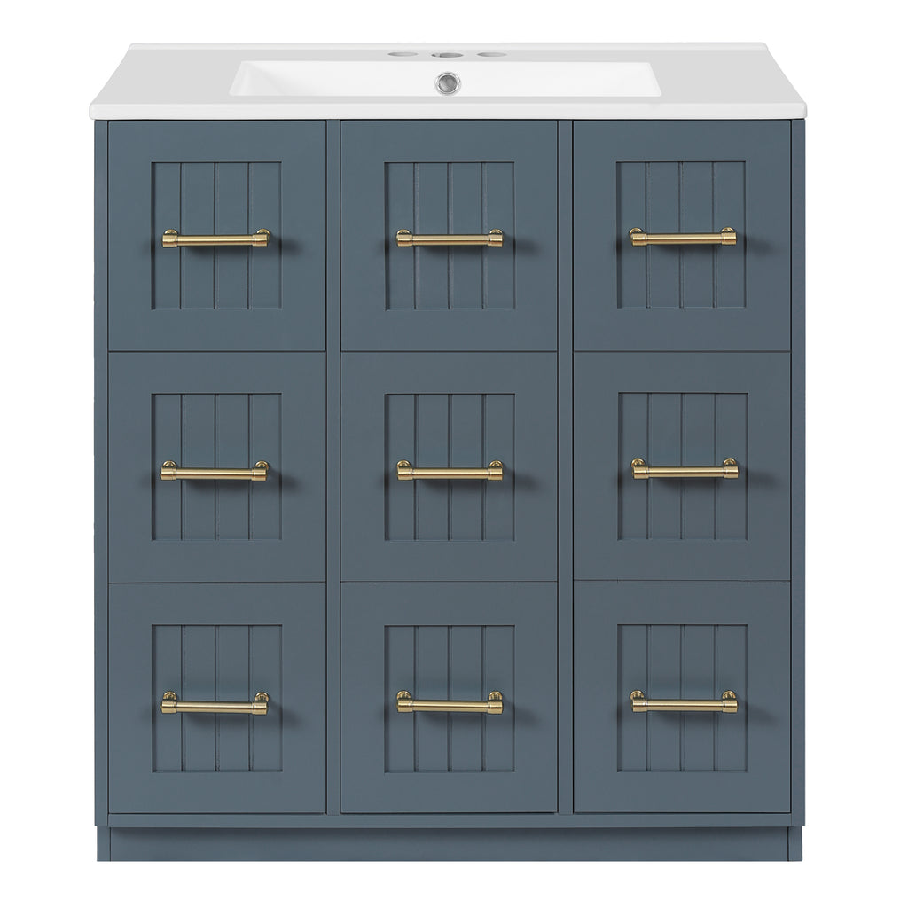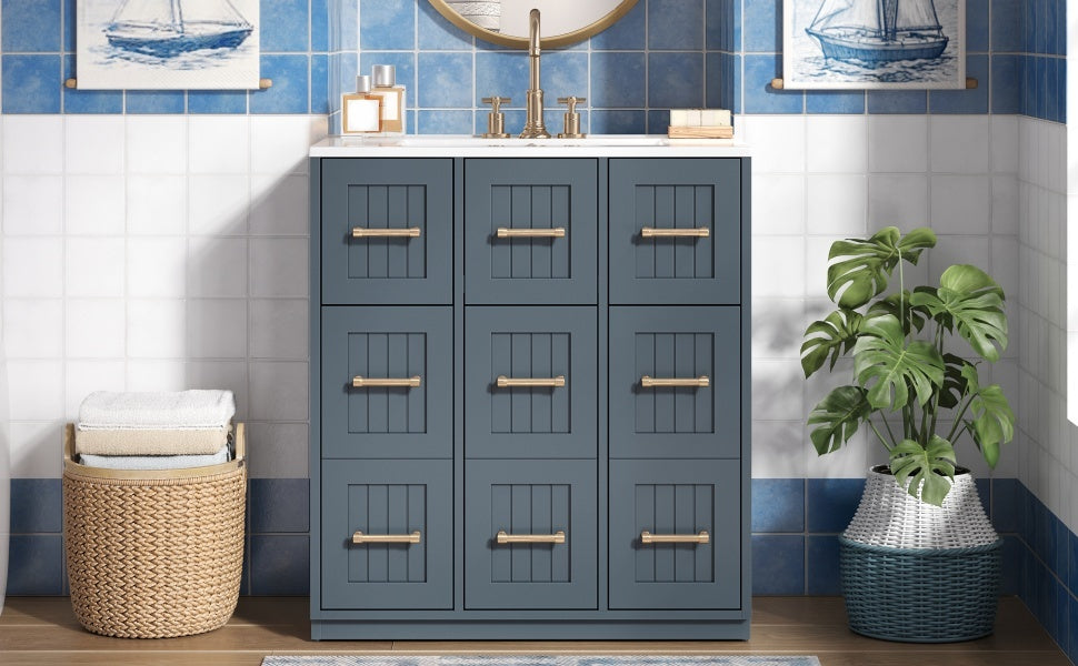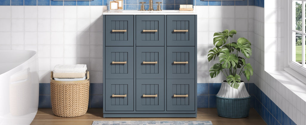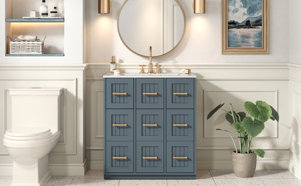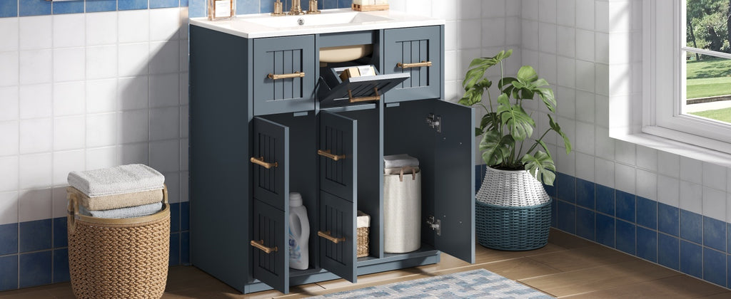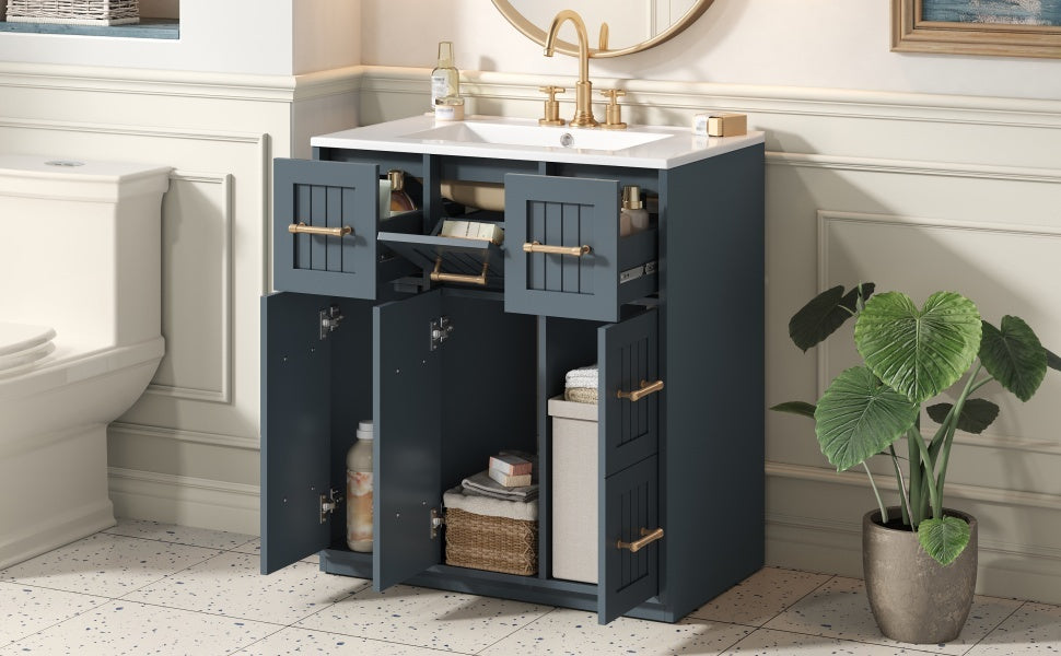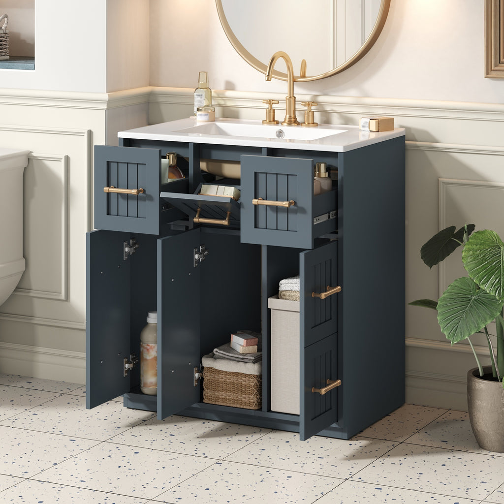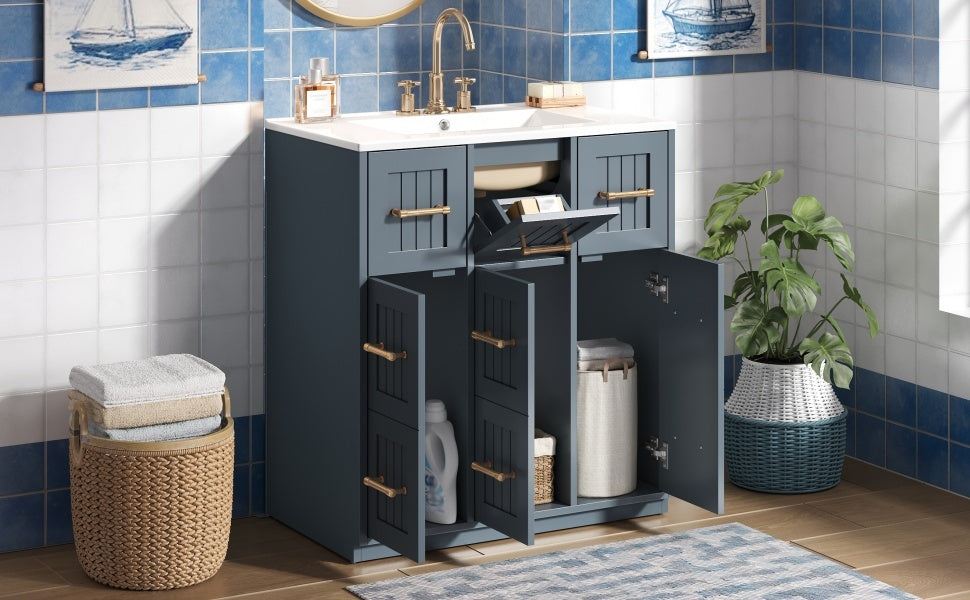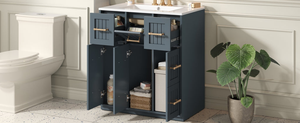 30inch Bathroom Vanity with Undermount Sink and Drawers, Painted Surface, Soft-Close Doors, Bathroom Cabinet with Tip-Out Drawer
